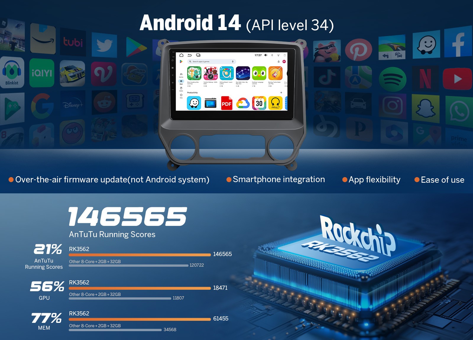Quad Core, RAM 3GB, ROM 32GB, Android 14 OS |