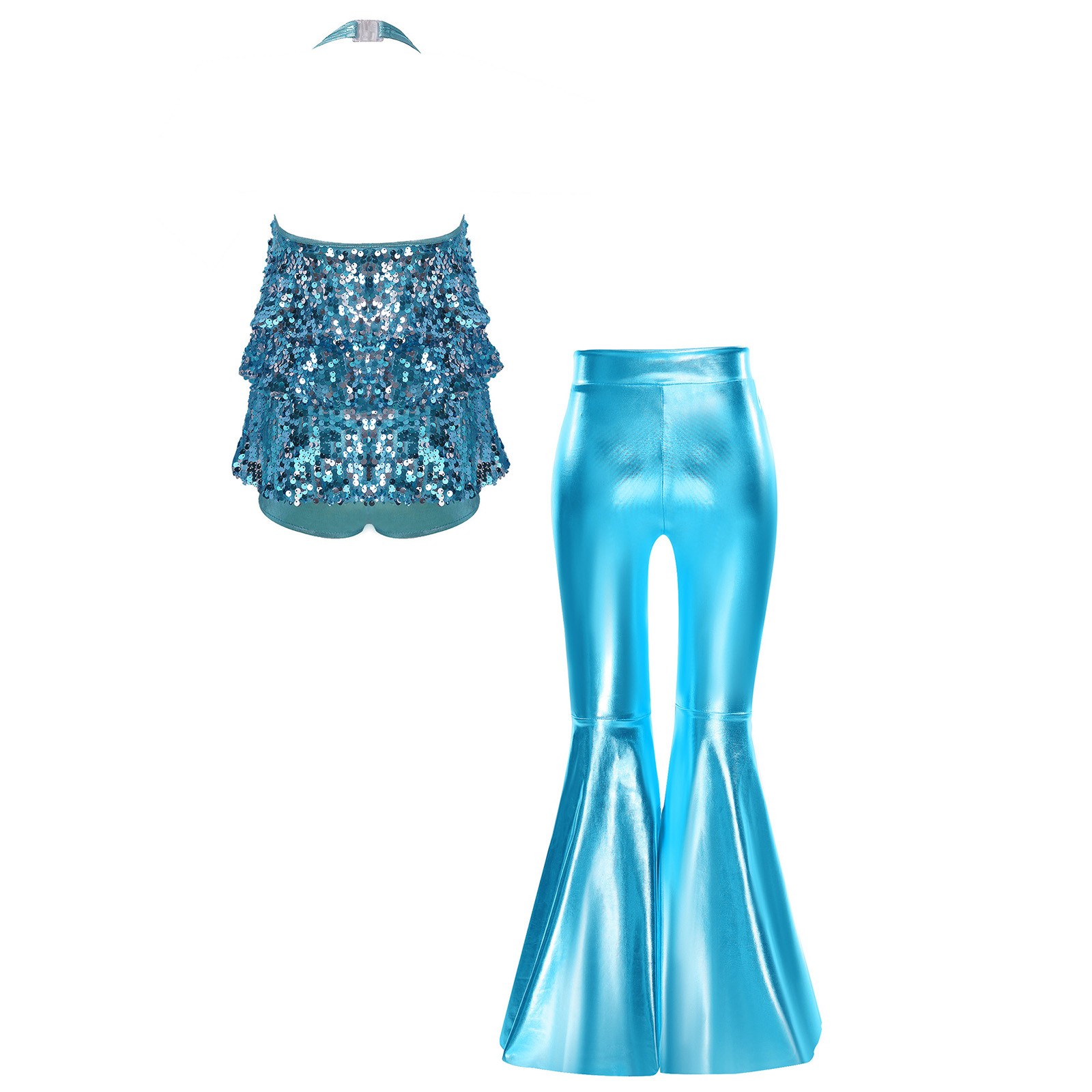 Girls Outfits Stage Performance Dancewear Modern Costume Halter Ballroom Tango