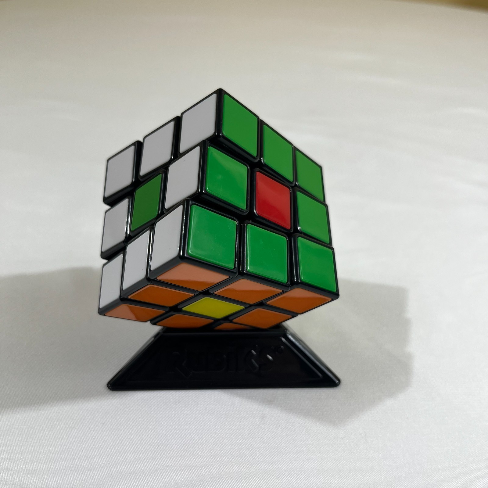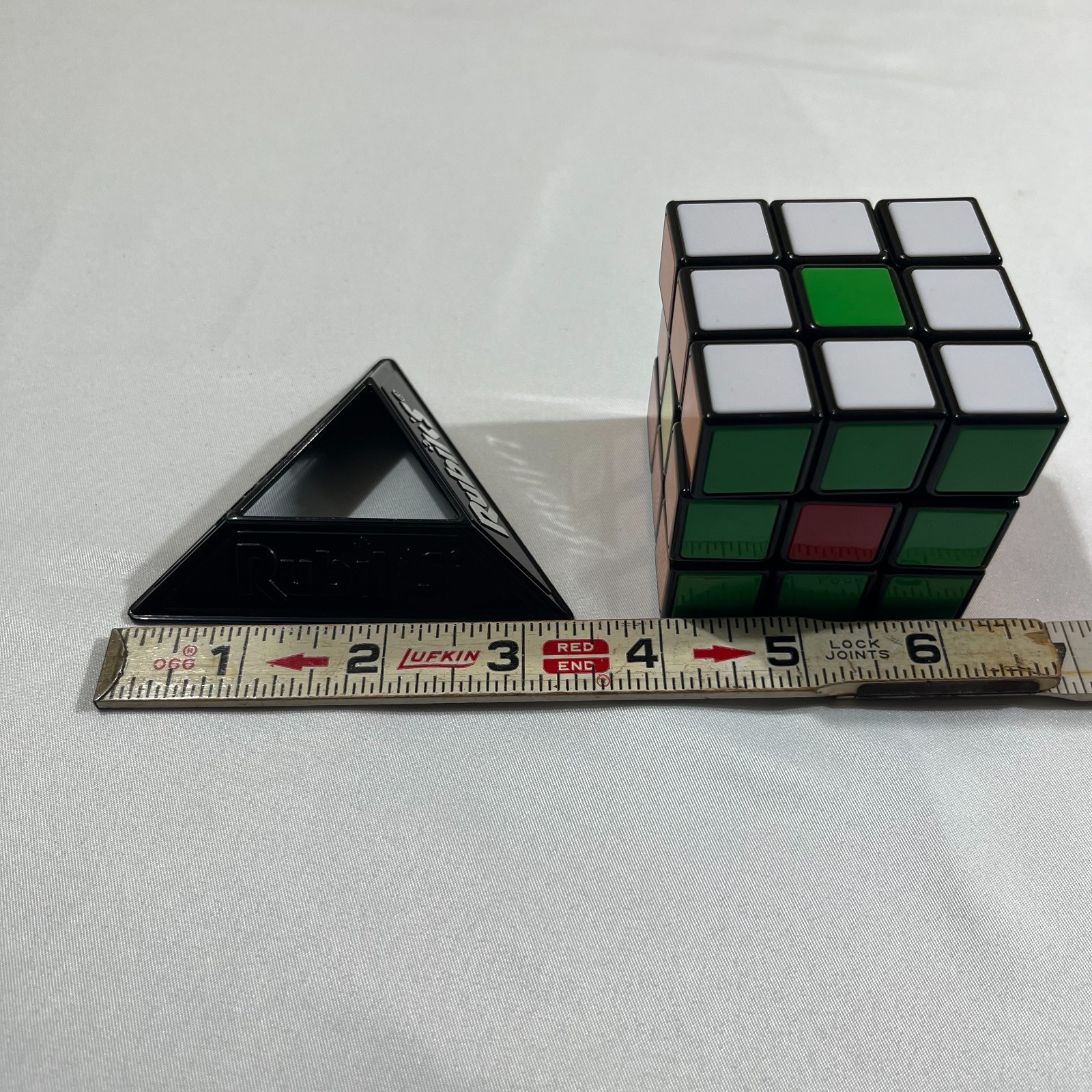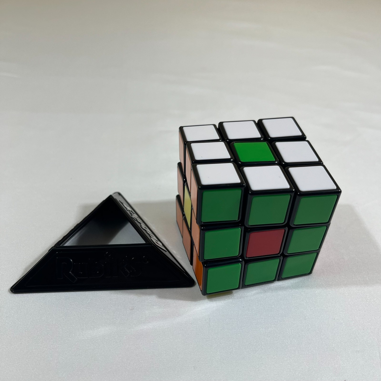Original Rubiks Cube Puzzle Toy with Black Triangle Display Stand Retro