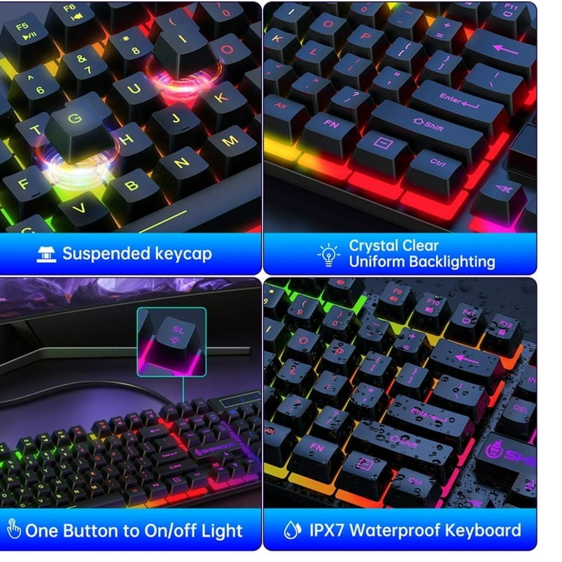 Wired Gaming Keyboard Mouse Combo, RGB Backlit