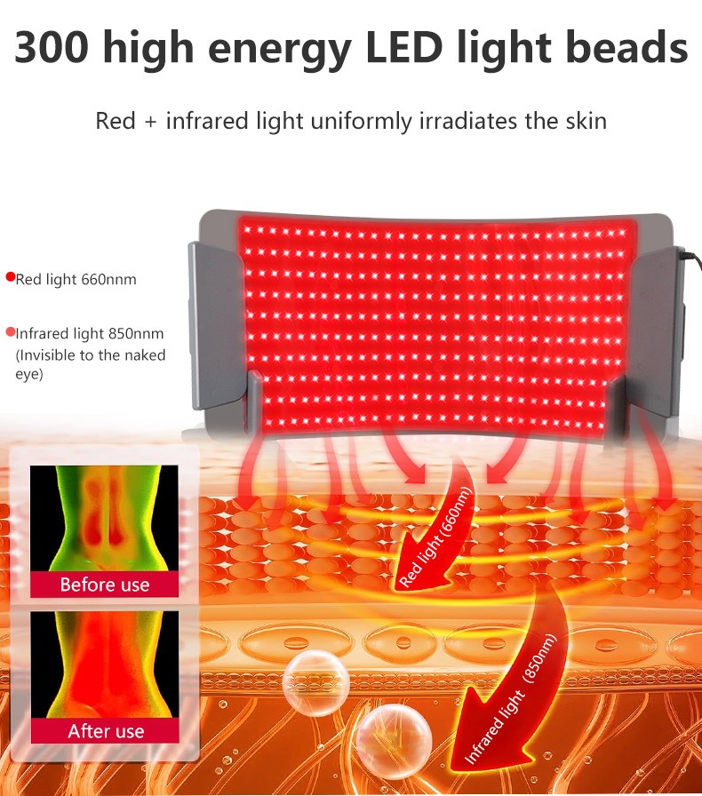 300LEDs Red Light Therapy Pad with Bracket LED Infrared Mat for Pain Relief Body