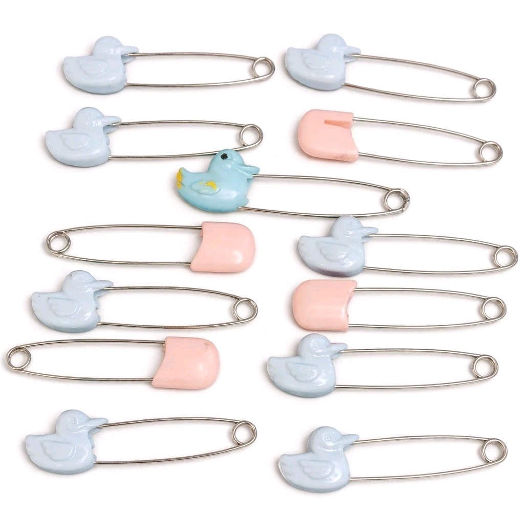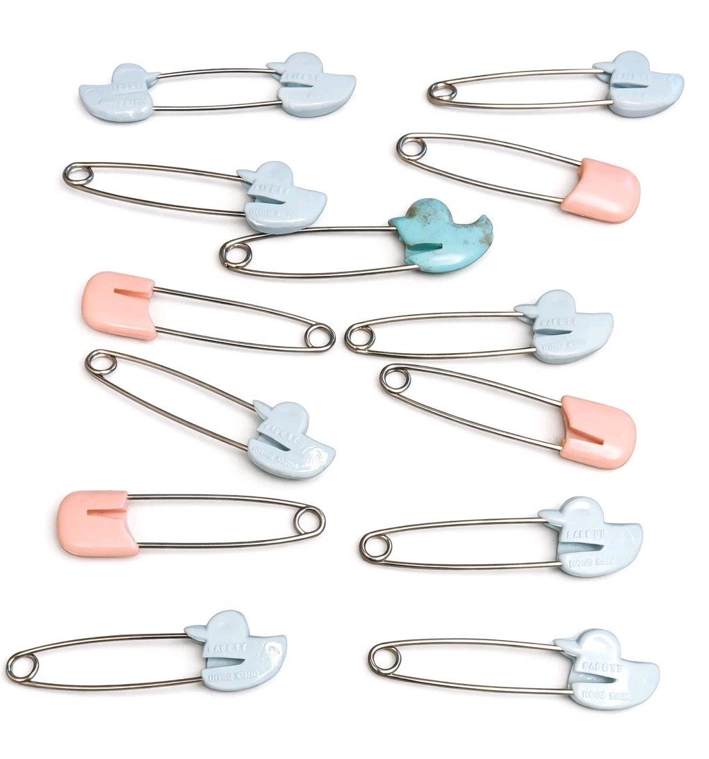 Vintage Baby Safety Diaper Pins Ducks Set of 13 Blue Pink Made In Hong Kong