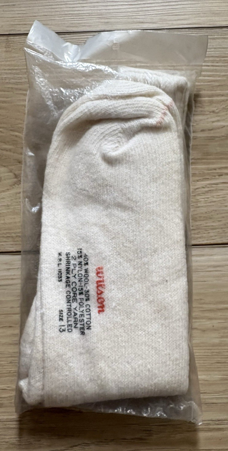как выглядит Vintage Wilsons Wool blend hose socks USA size 13 New Sealed in bag Ivory фото