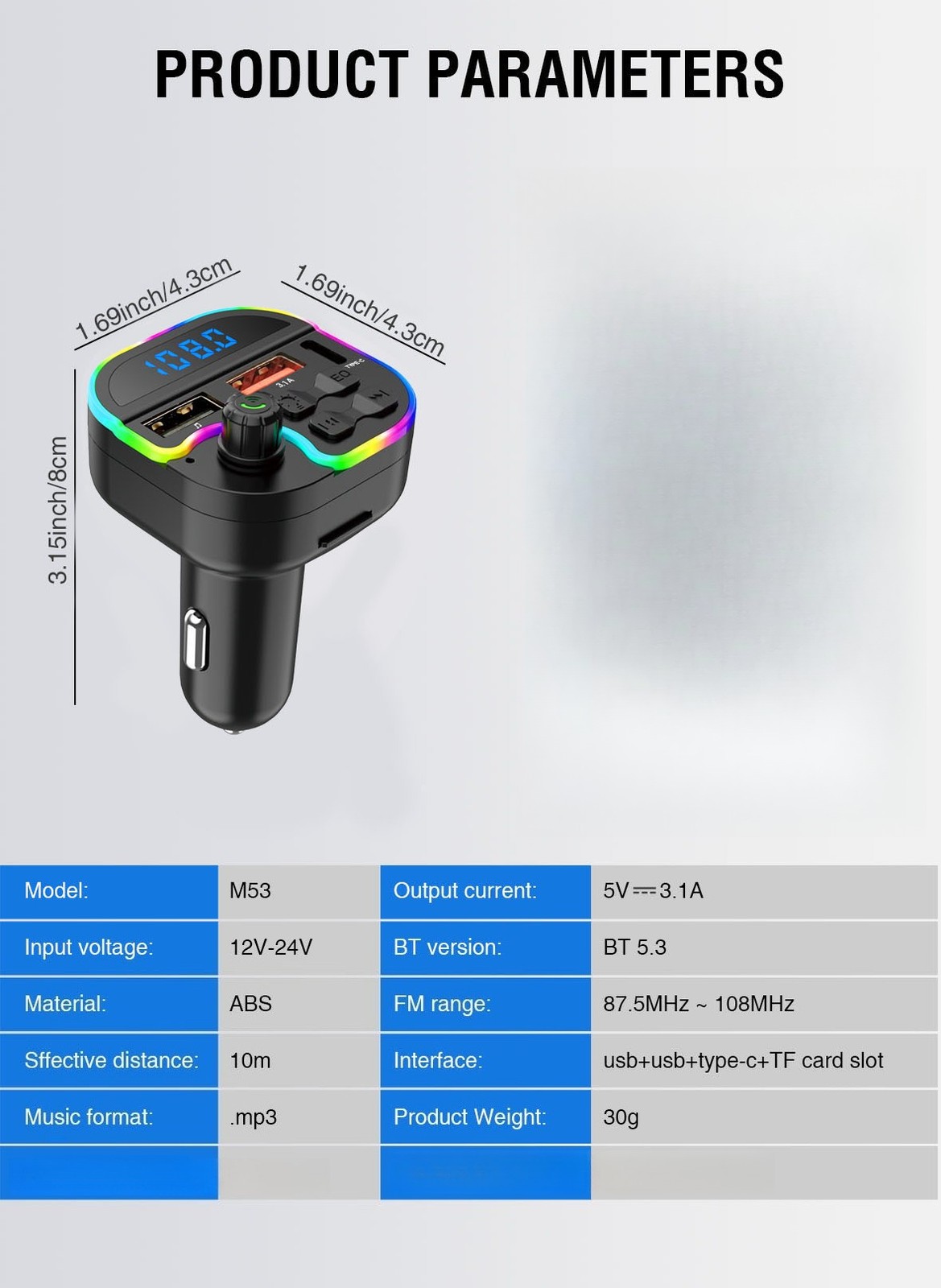 Compact Ambient-light Noise-reducing Easy-to-use Car Bluetooth MP3 Ambient Light