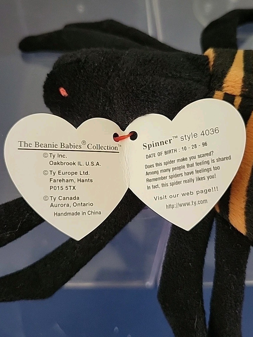 как выглядит SPINNER  PVC 1996 TY Beanie Baby SPIDER  MWMT