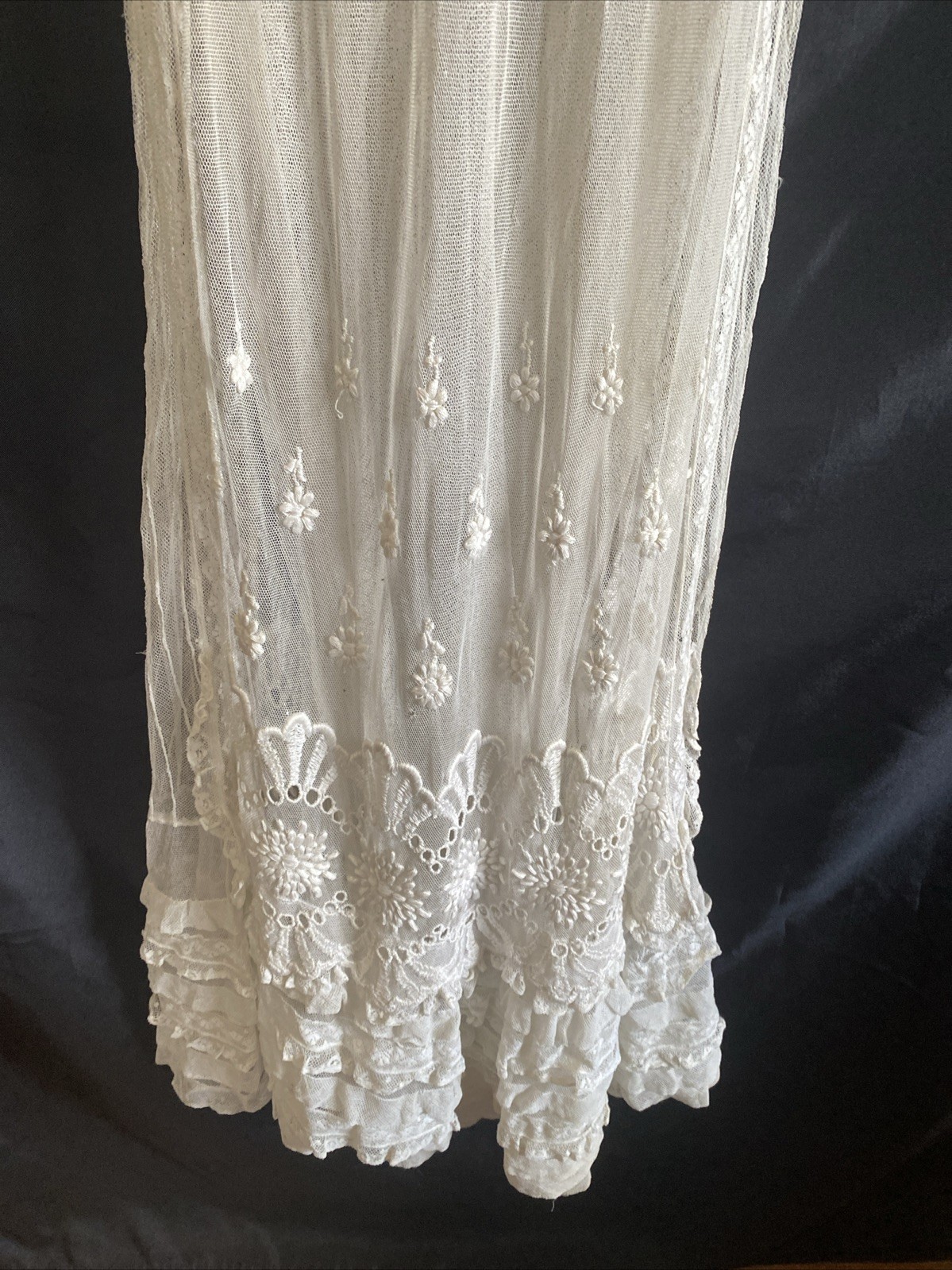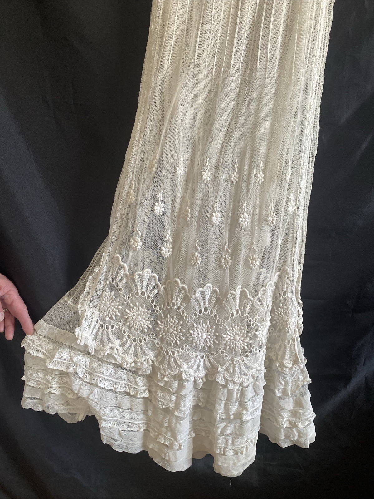 Vintage Edwardian Style Lace Ruffle Tea Party Dress Old Sheer Fine Detail