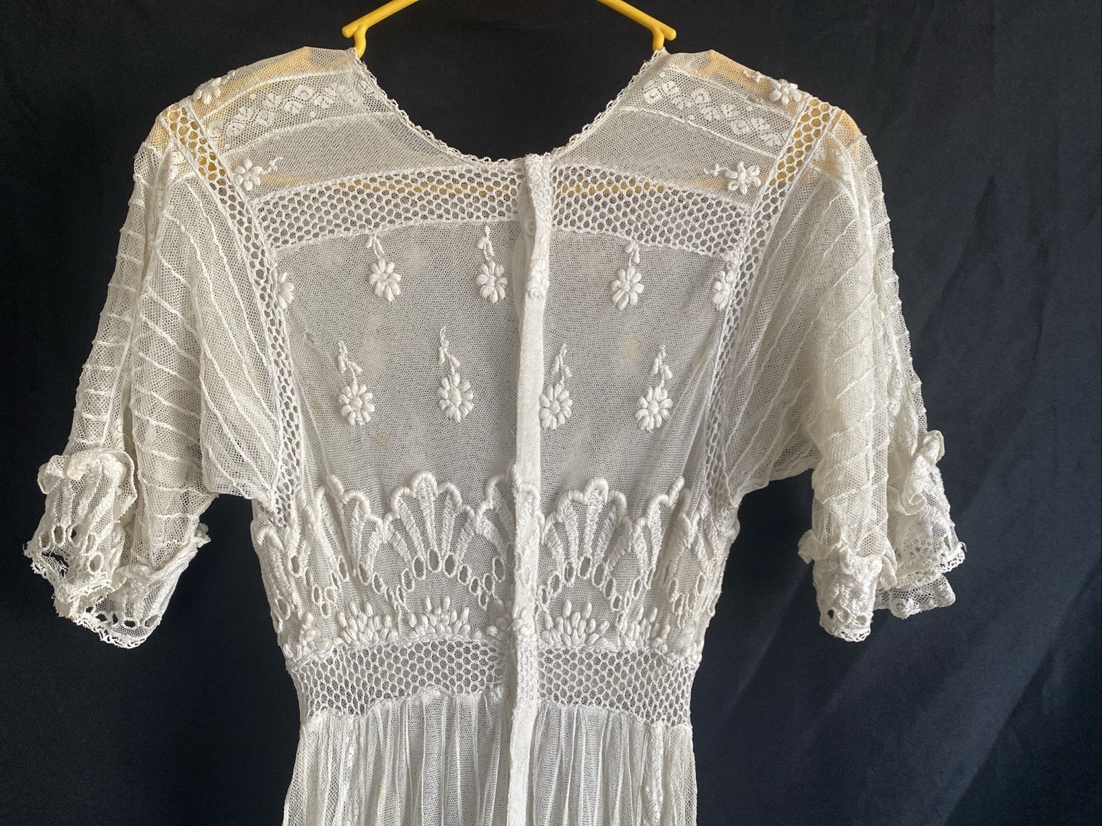 как выглядит Vintage Edwardian Style Lace Ruffle Tea Party Dress Old Sheer Fine Detail фото