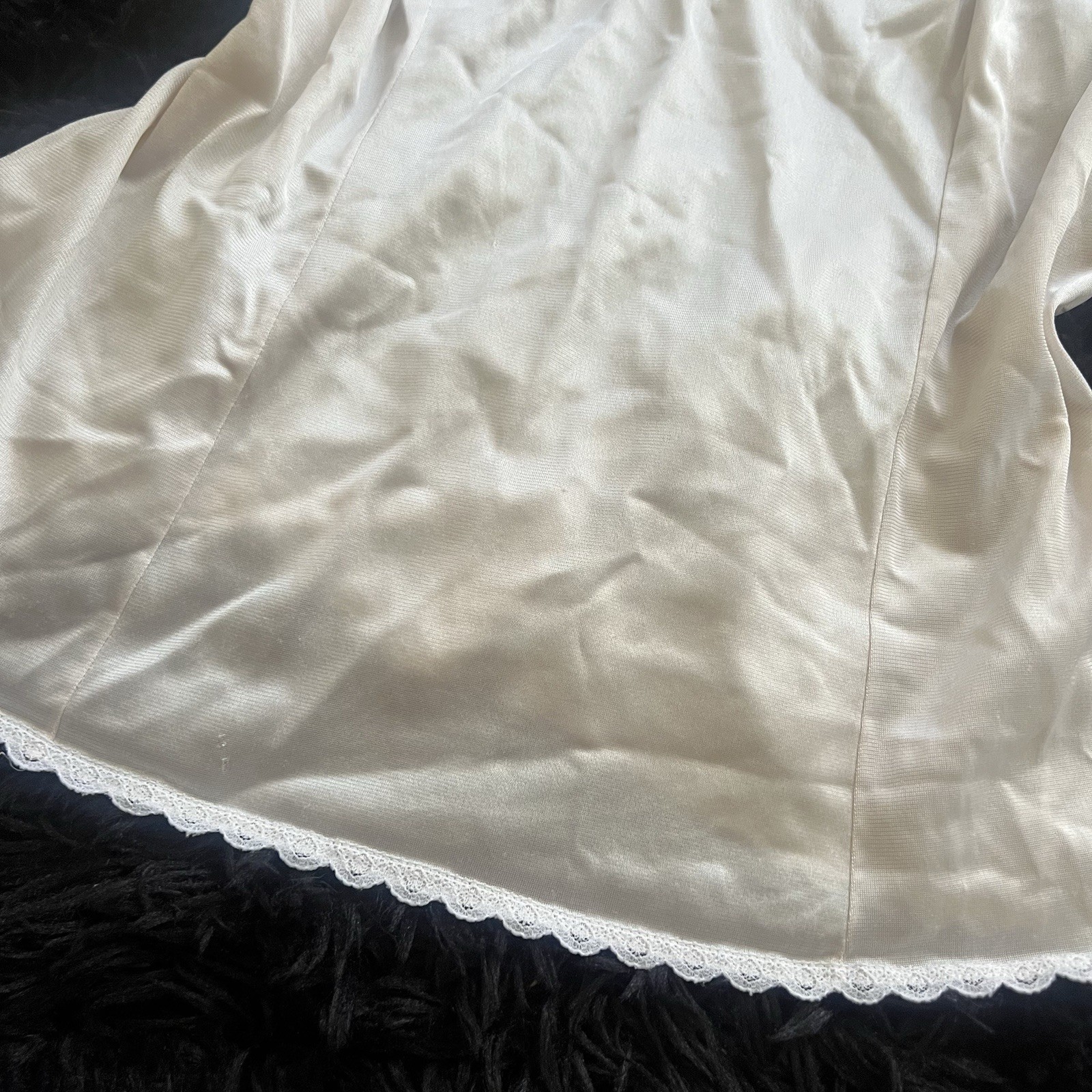 как выглядит Vintage Vanity Fair Lace Trim Camisole Top White Satin Triscot Size 38 AS-IS фото