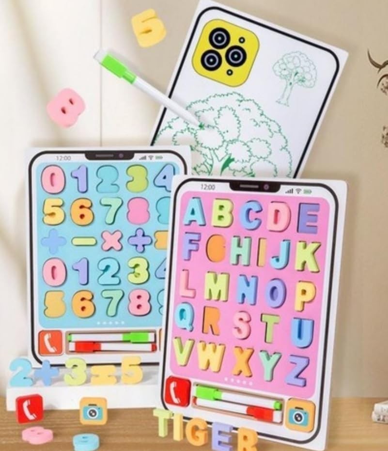 как выглядит 2in1 Alphabet Tracing Board 1 2 3 Puzzle Kids Educational Montessori Toy фото