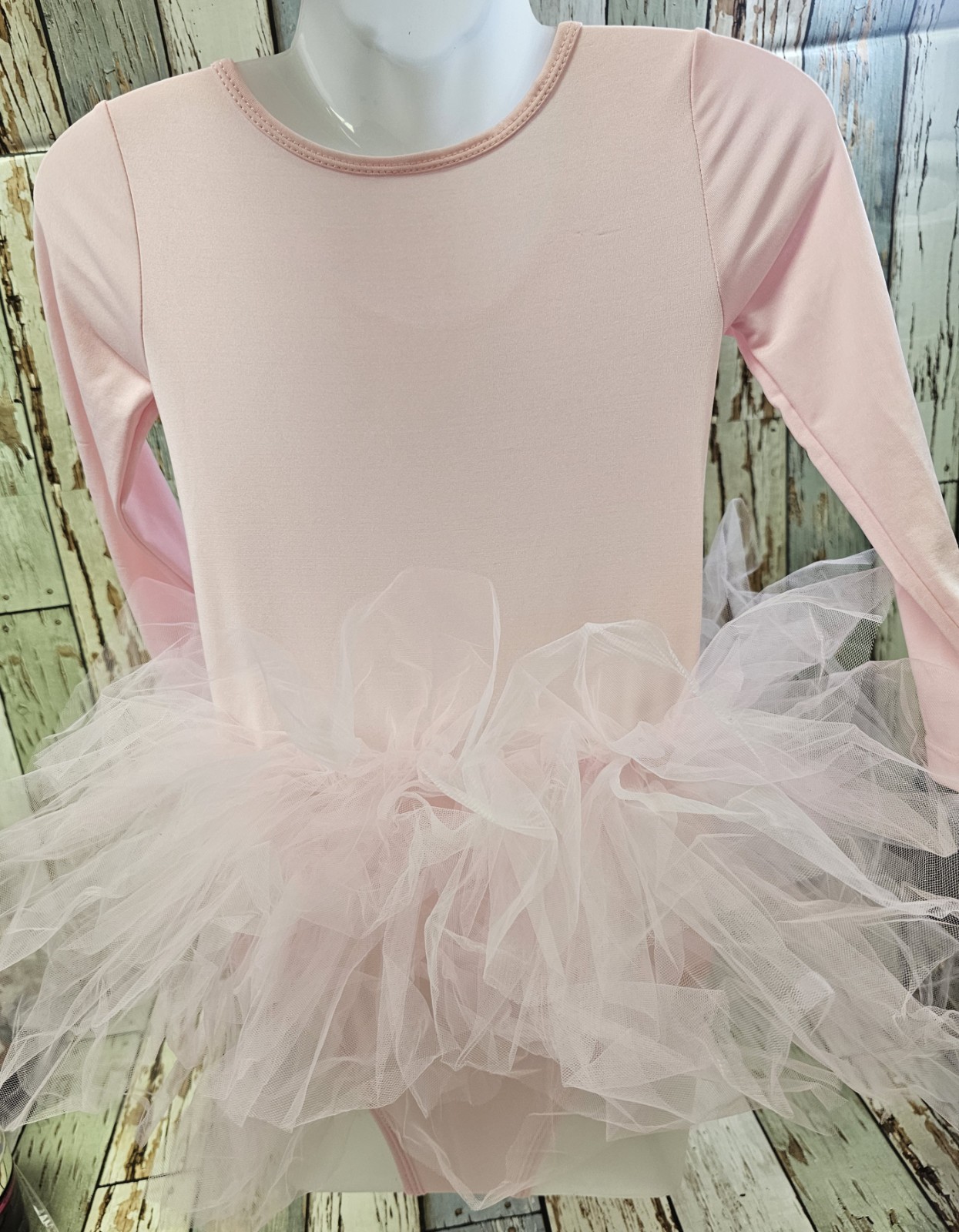 как выглядит Girls Long Sleeve Fluffy Mesh Tutu Ballet Dress Gymnastic Leotard Sz M 8 фото