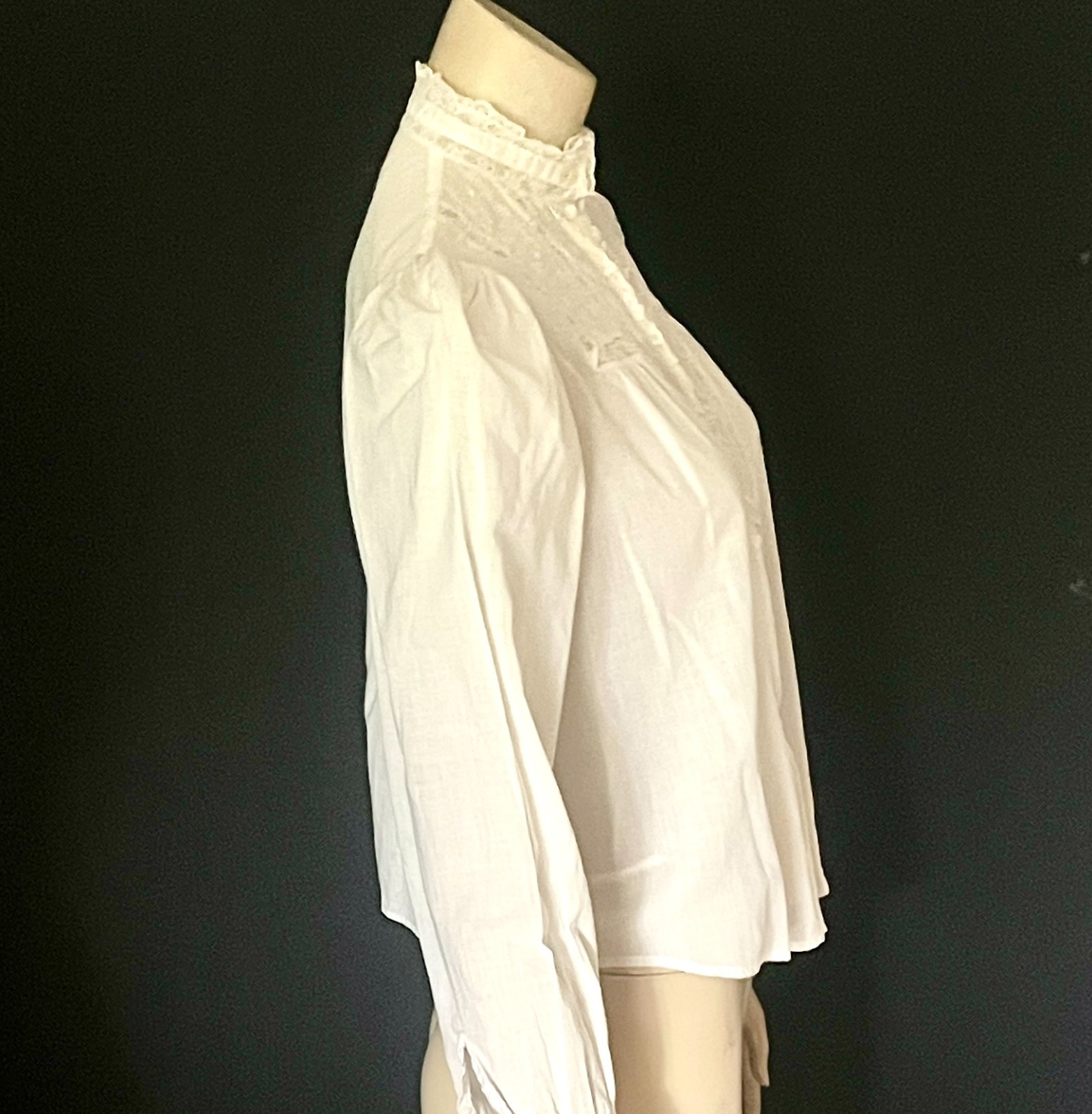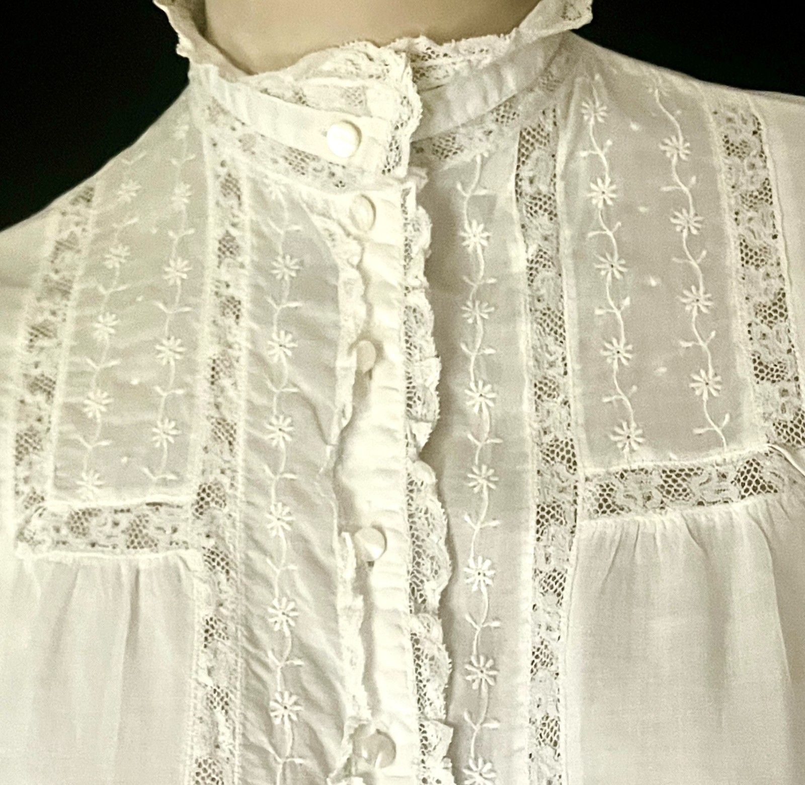 Charming Embroidered Edwardian Bodice Blouse, Leg O Mutton Sleeves, Lace, Small