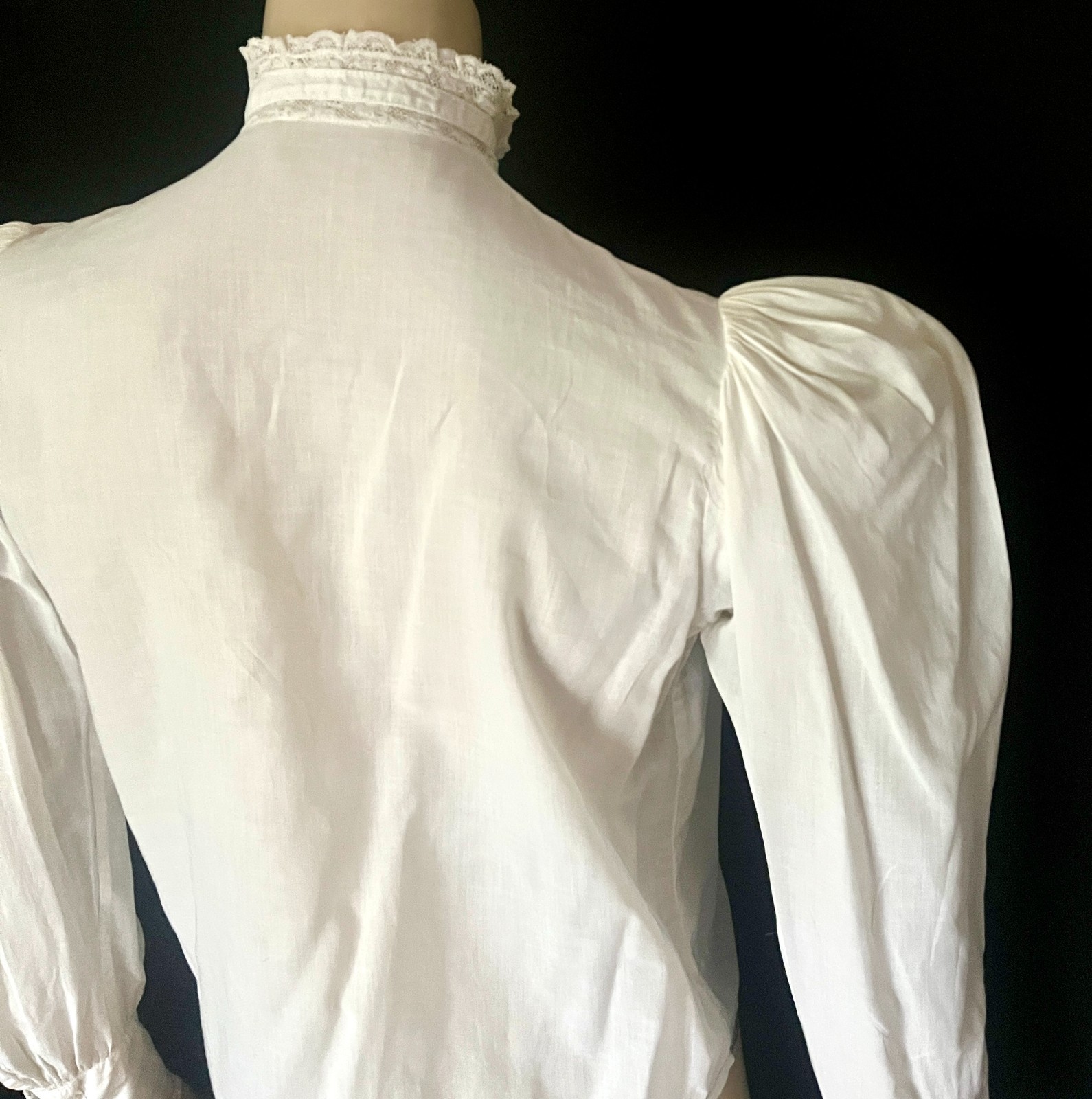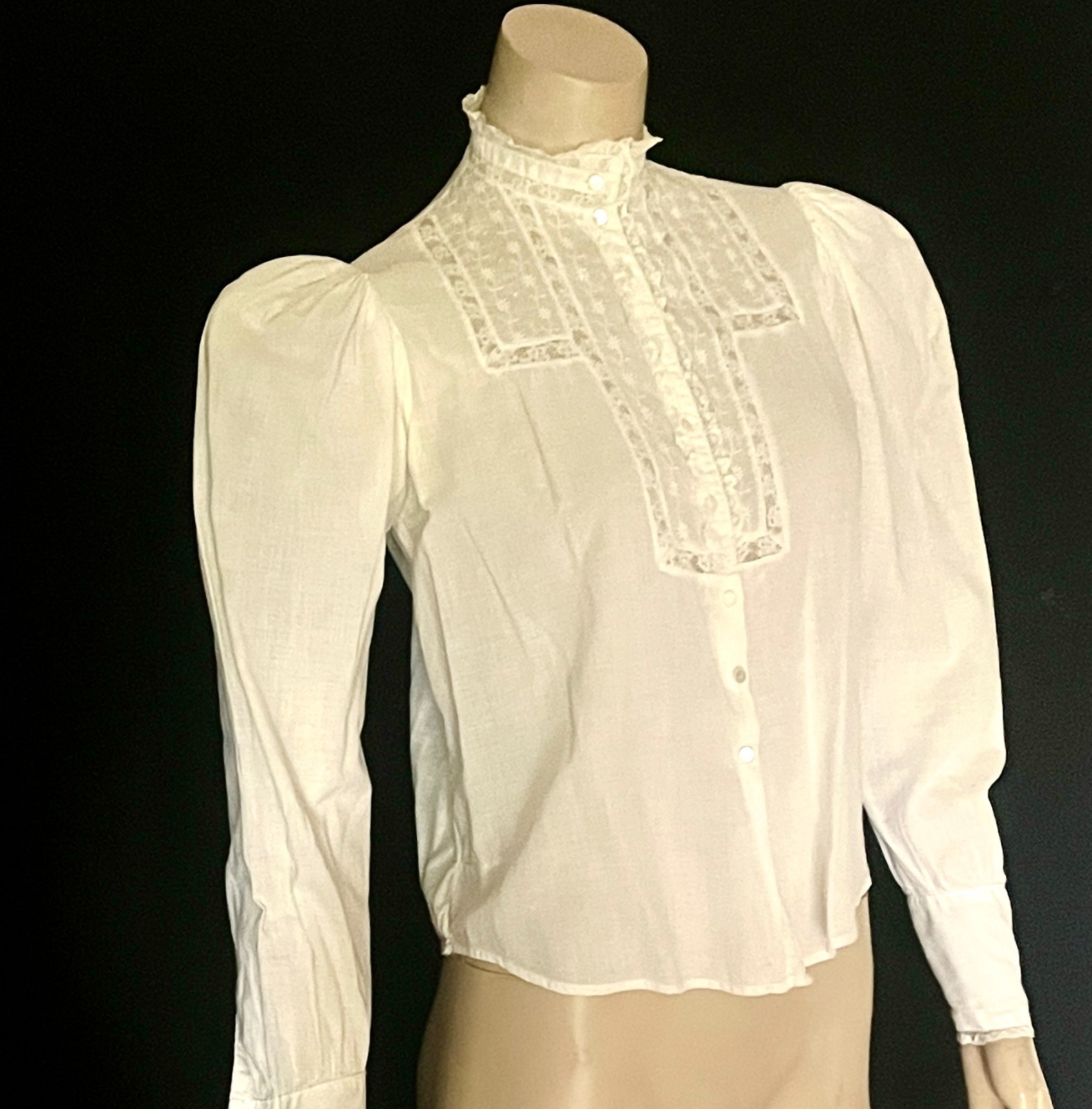 как выглядит Charming Embroidered Edwardian Bodice Blouse, Leg O Mutton Sleeves, Lace, Small фото