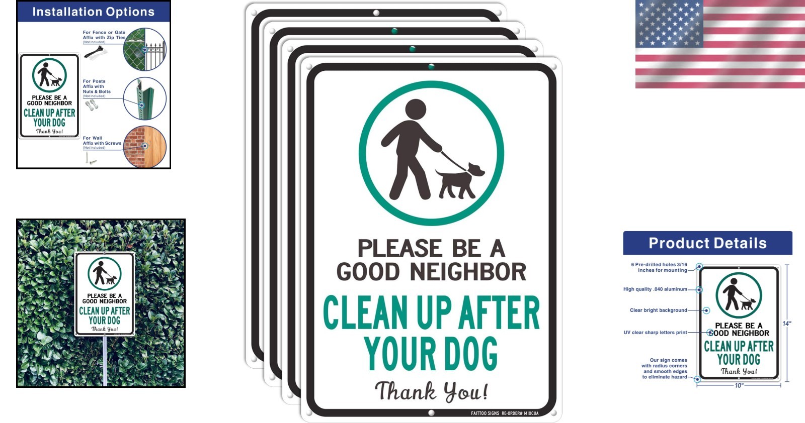 Weather Resistant Dog Waste Signs, 4 Pack