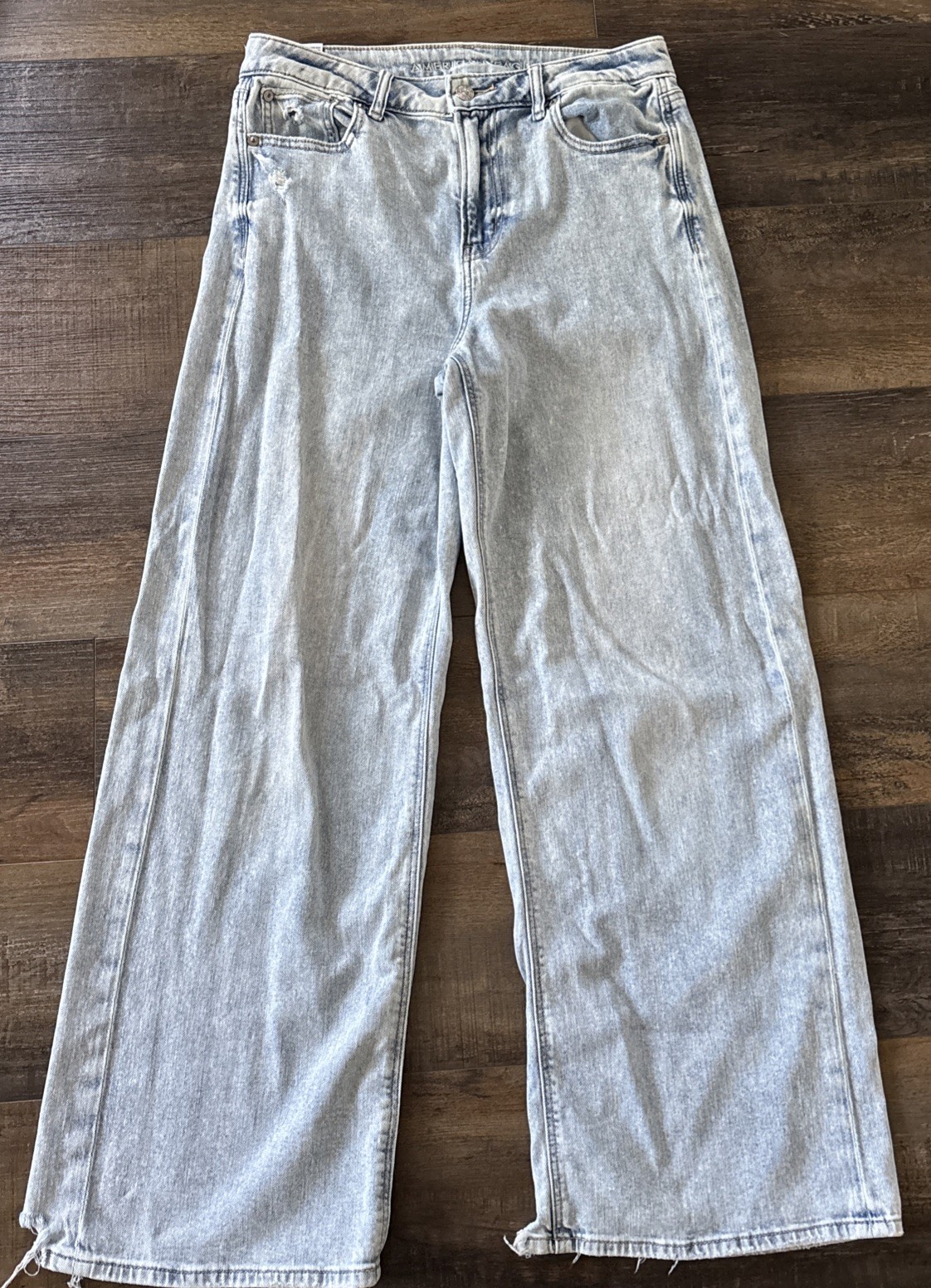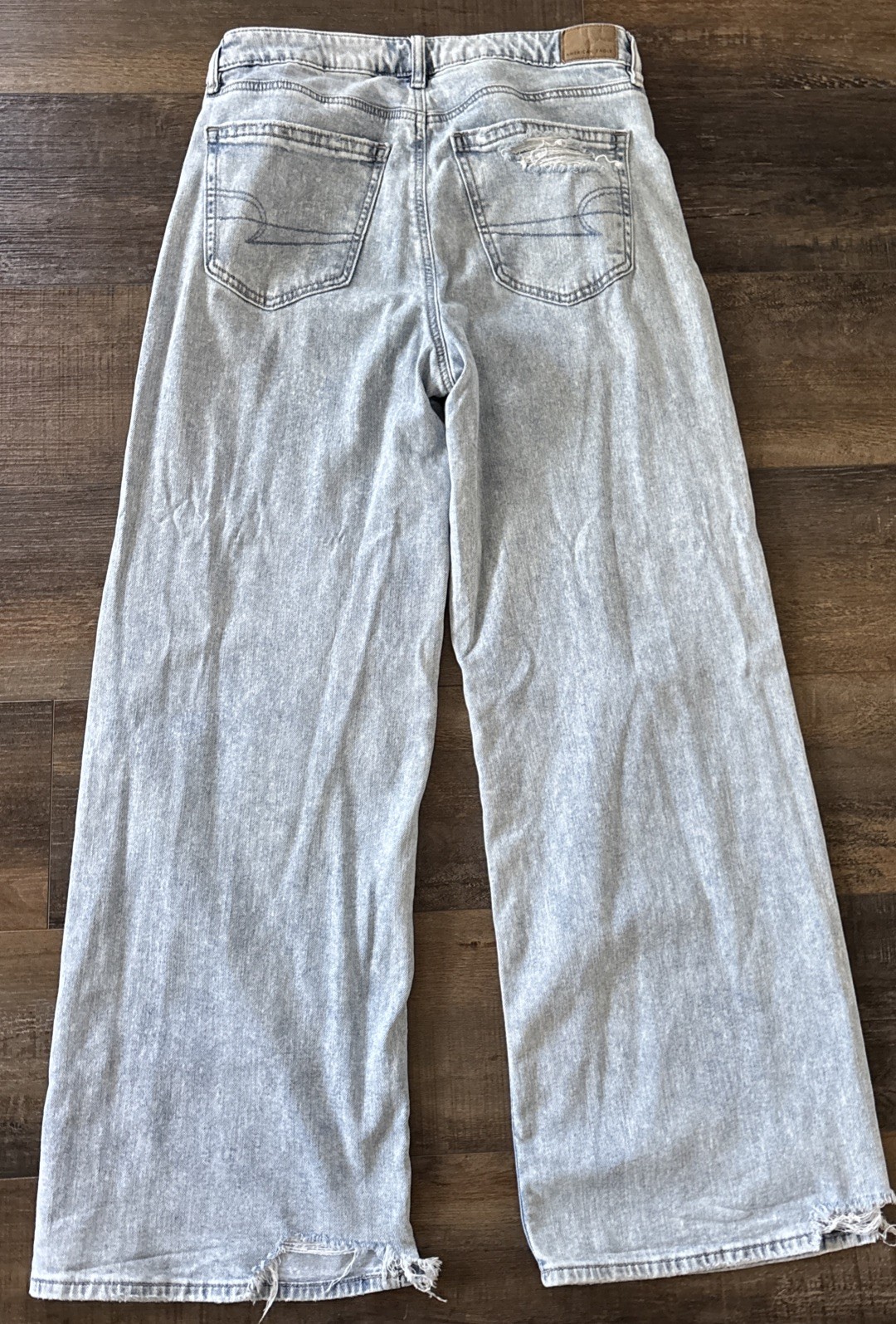 American Eagle Super High Rise Baggy Wide Leg Jeans 4 Regular Light Wash Stretch