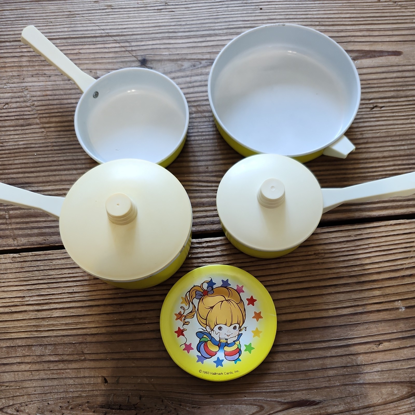 Vintage 1980s Rainbow Brite Metal Toy Kitchen Pots Pans Lids lot 1983