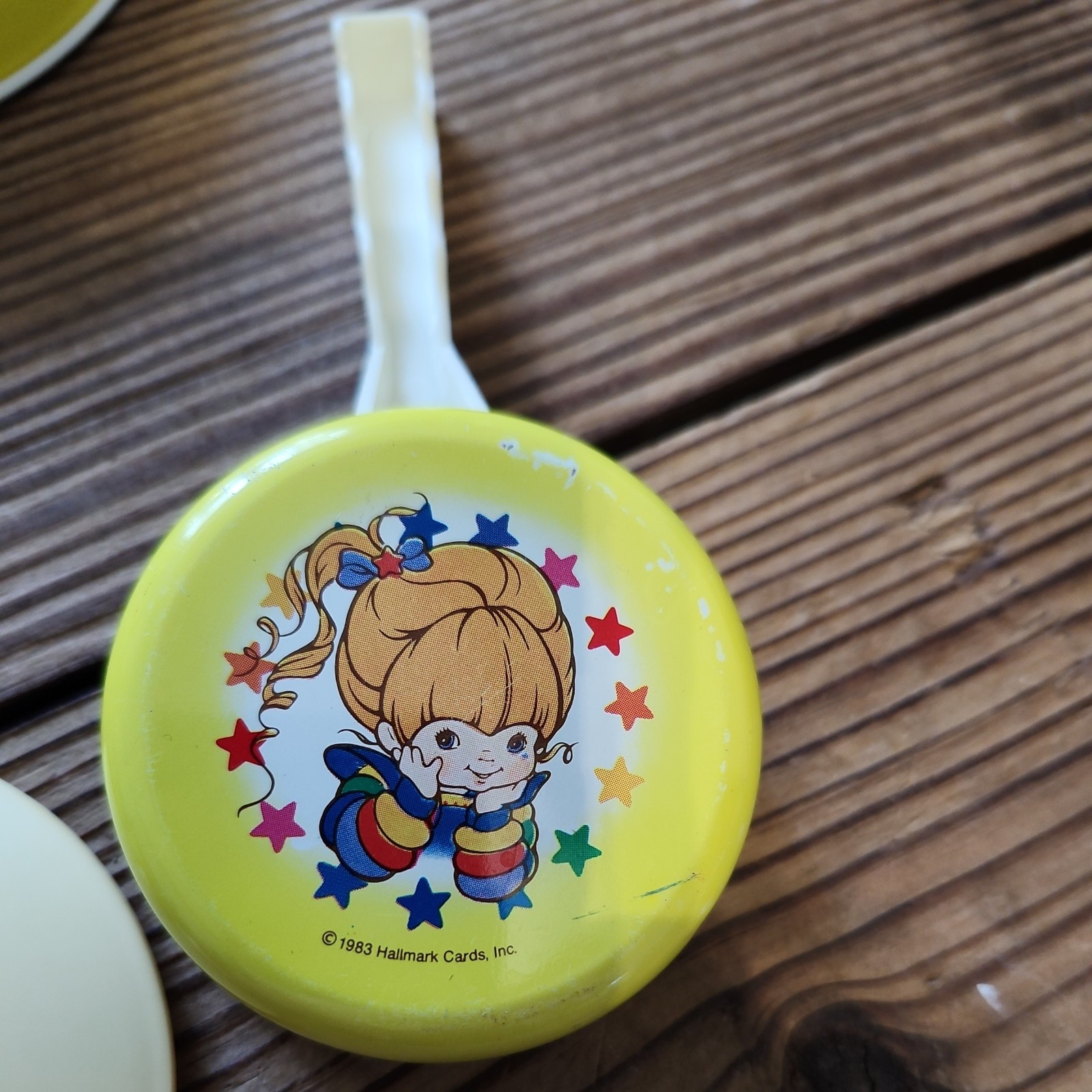 как выглядит Vintage 1980s Rainbow Brite Metal Toy Kitchen Pots Pans Lids lot 1983 фото