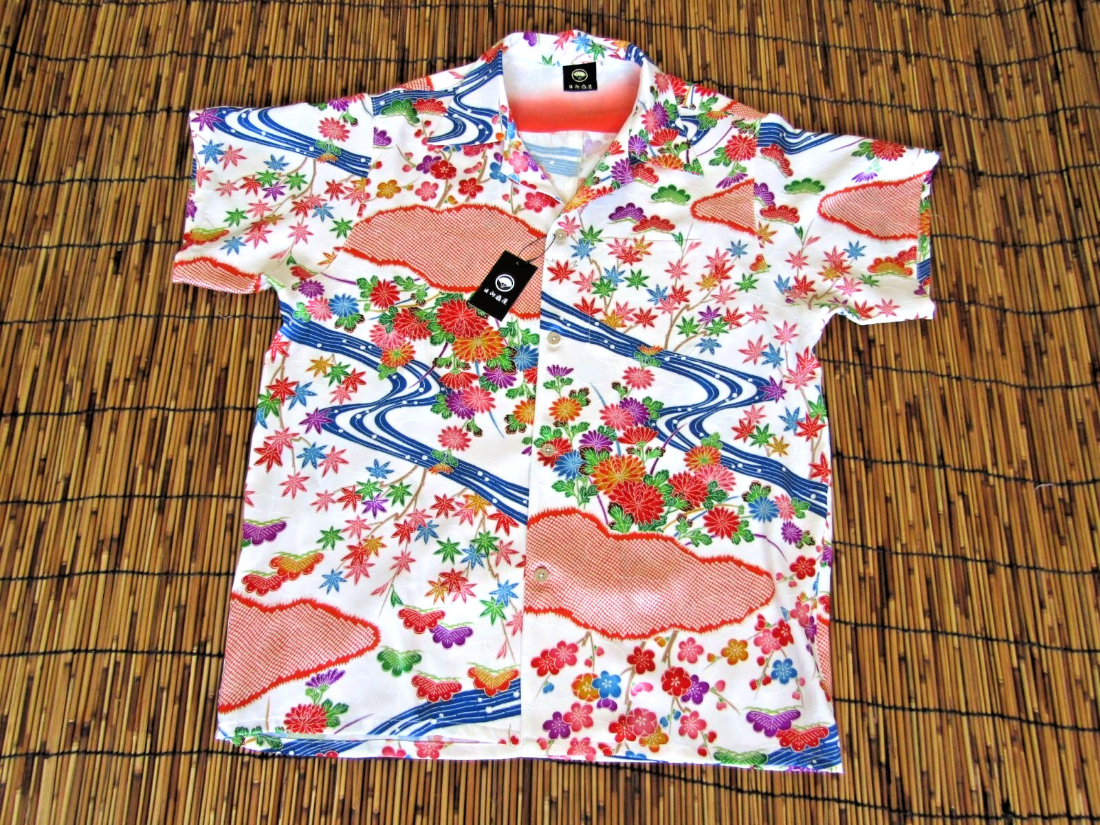 Vintage Kimono Remake Aloha Shirt S Silk Handmade Japan Haori Fabric 811 NEW