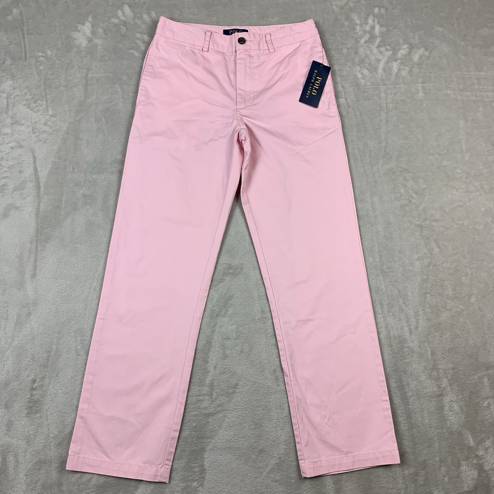 New Polo Ralph Lauren Pants Boys 12 Pink Flat Front Straight Leg Blue Pony