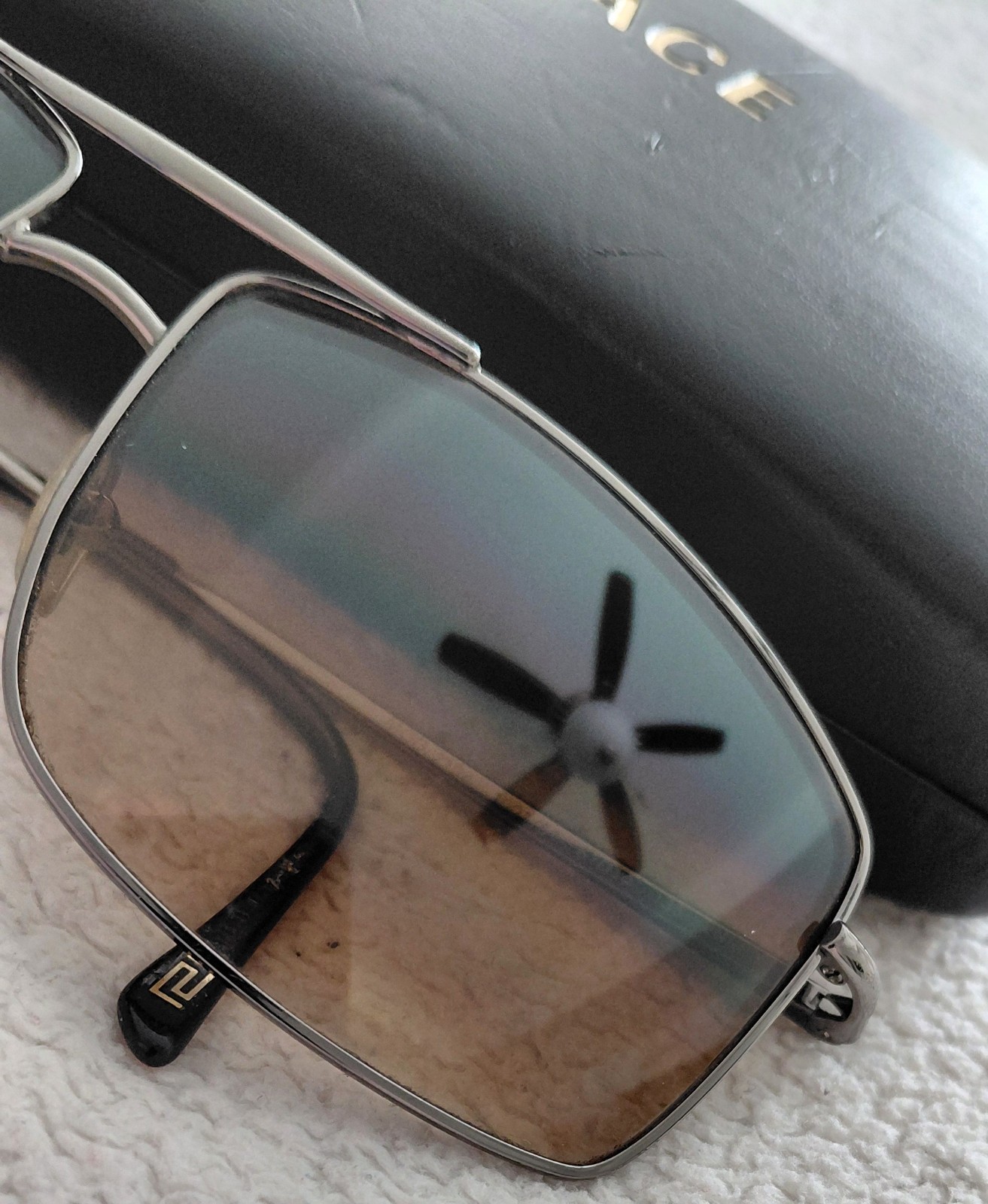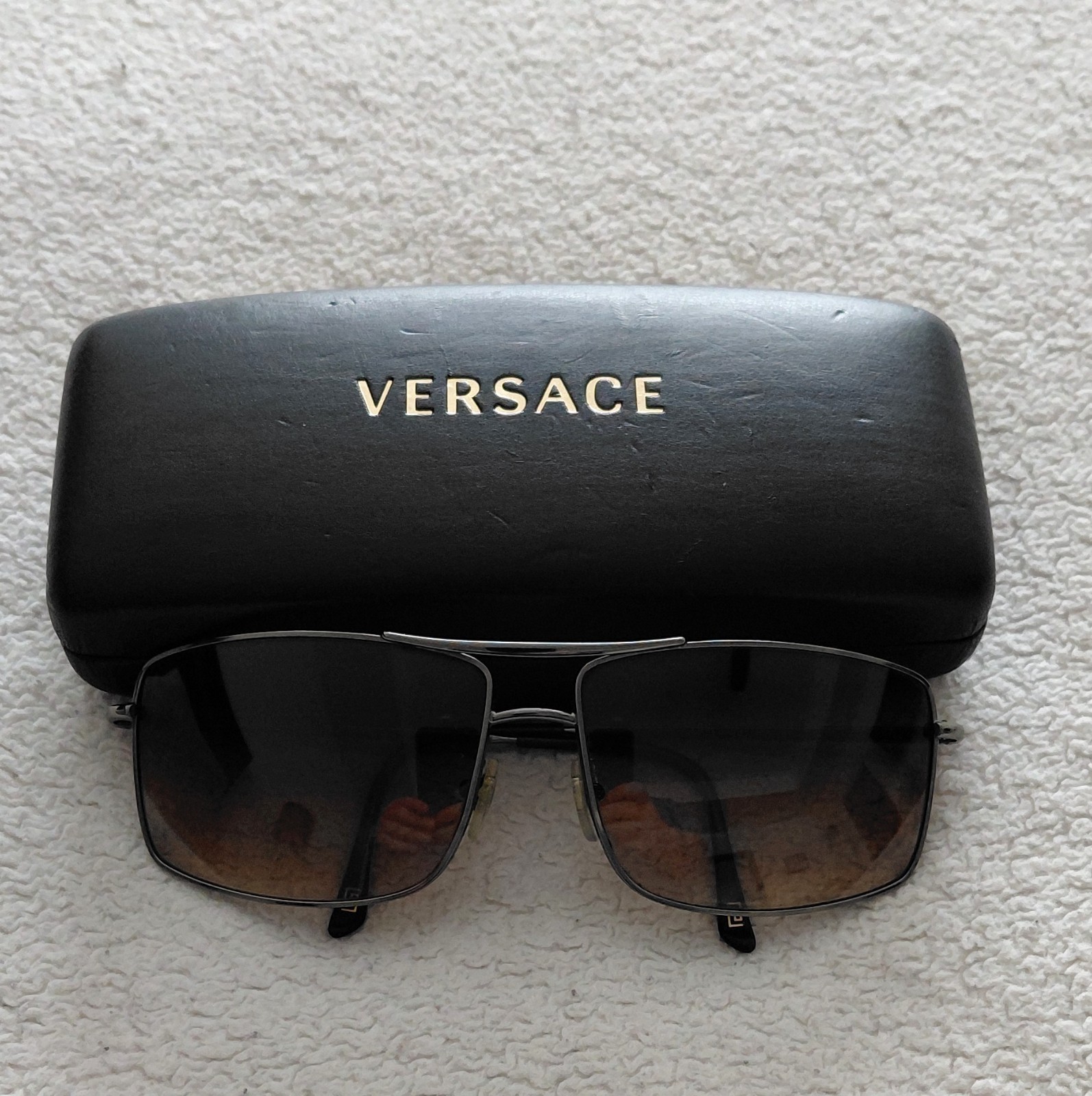 как выглядит Vintage 2008 Versace MOD 2104 Gunmetal Aviator Sunglasses w/ Case - EXCELLENT фото
