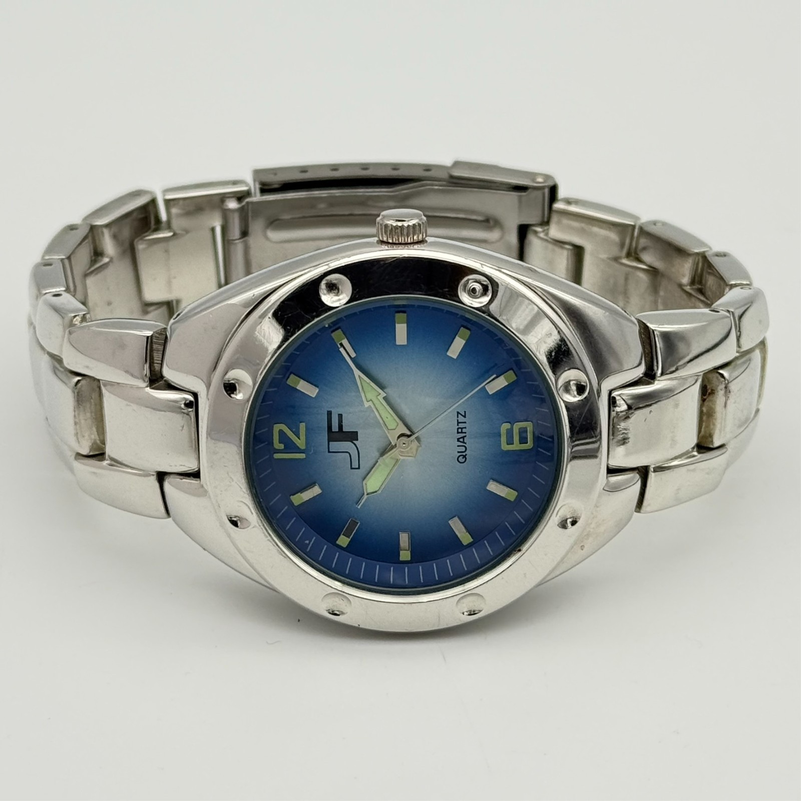 как выглядит Mens JF Glossy Silver Tone 40mm Classic Quartz Bracelet Watch, Blue Dial, Runs фото