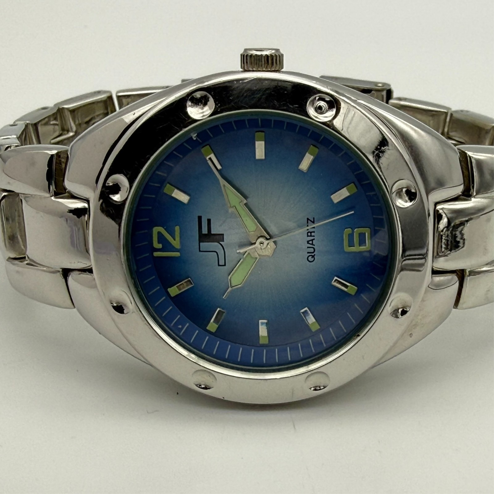 Men's JF Glossy Silver Tone 40mm Classic Quartz Bracelet Watch, Blue Dial, Runs