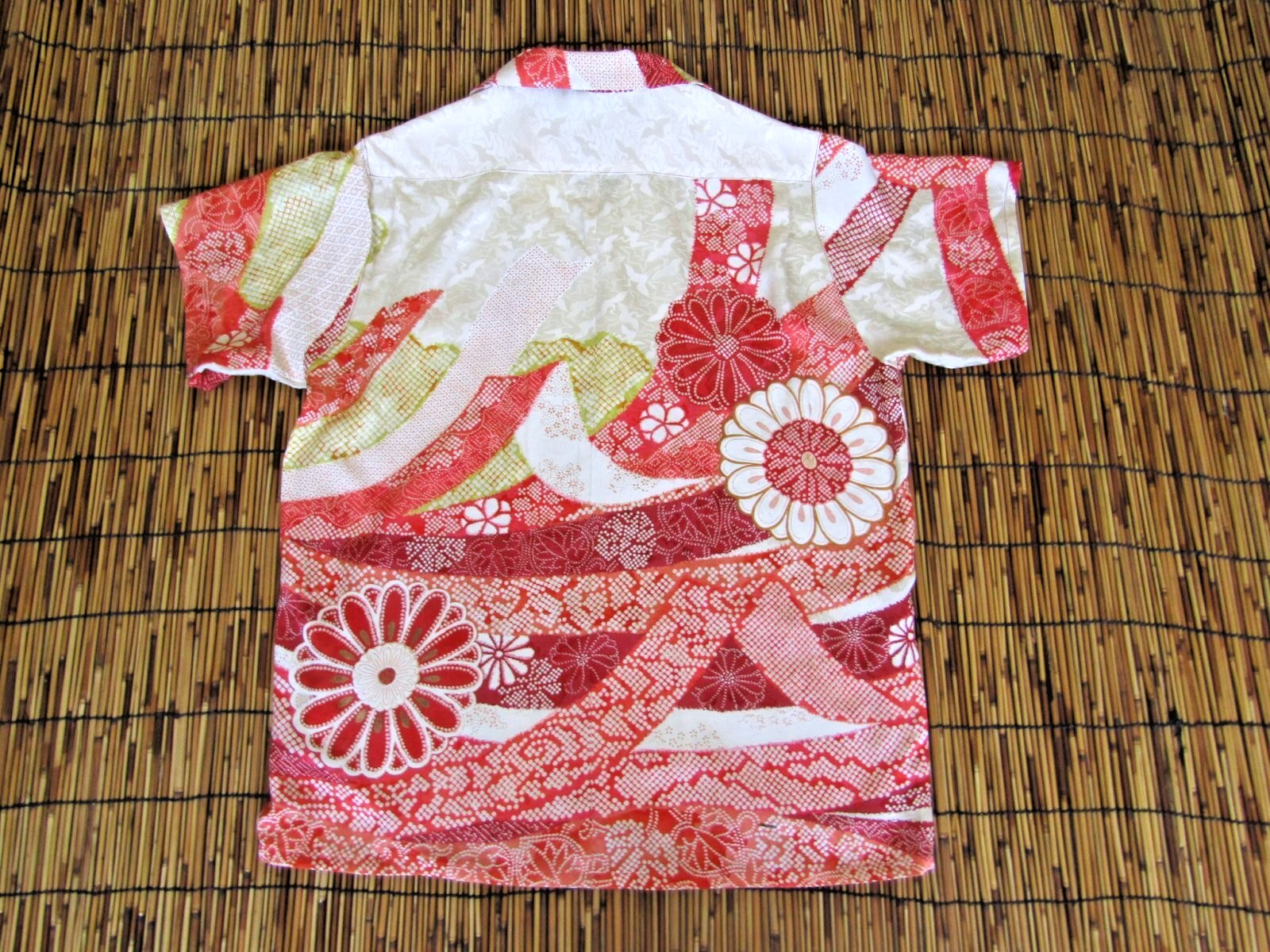 Vintage Kimono Remake Aloha Shirt S Silk Handmade Japan Haori Fabric 813 NEW