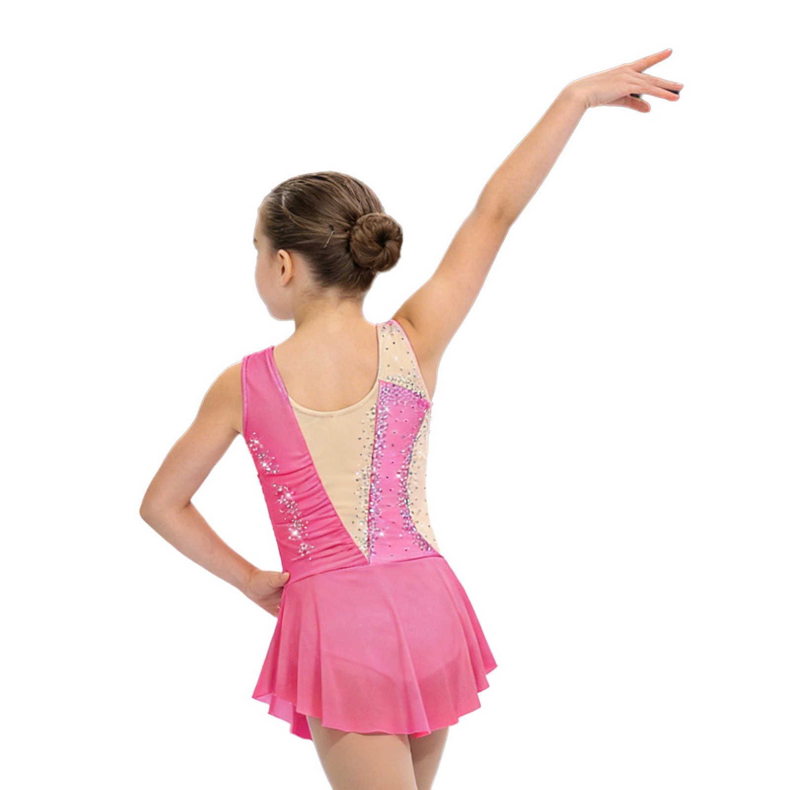 Kids Girls Dance Gymnastics Figure Skating Costume Mesh Side Slit Leotard Dress