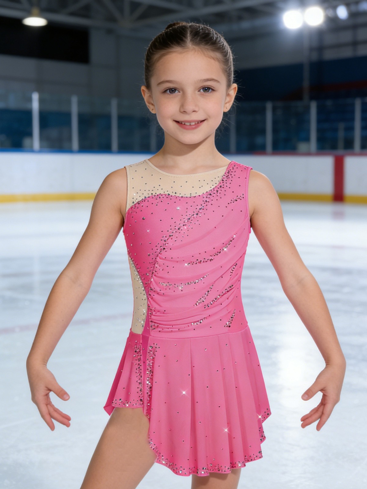 как выглядит Kids Girls Dance Gymnastics Figure Skating Costume Mesh Side Slit Leotard Dress фото