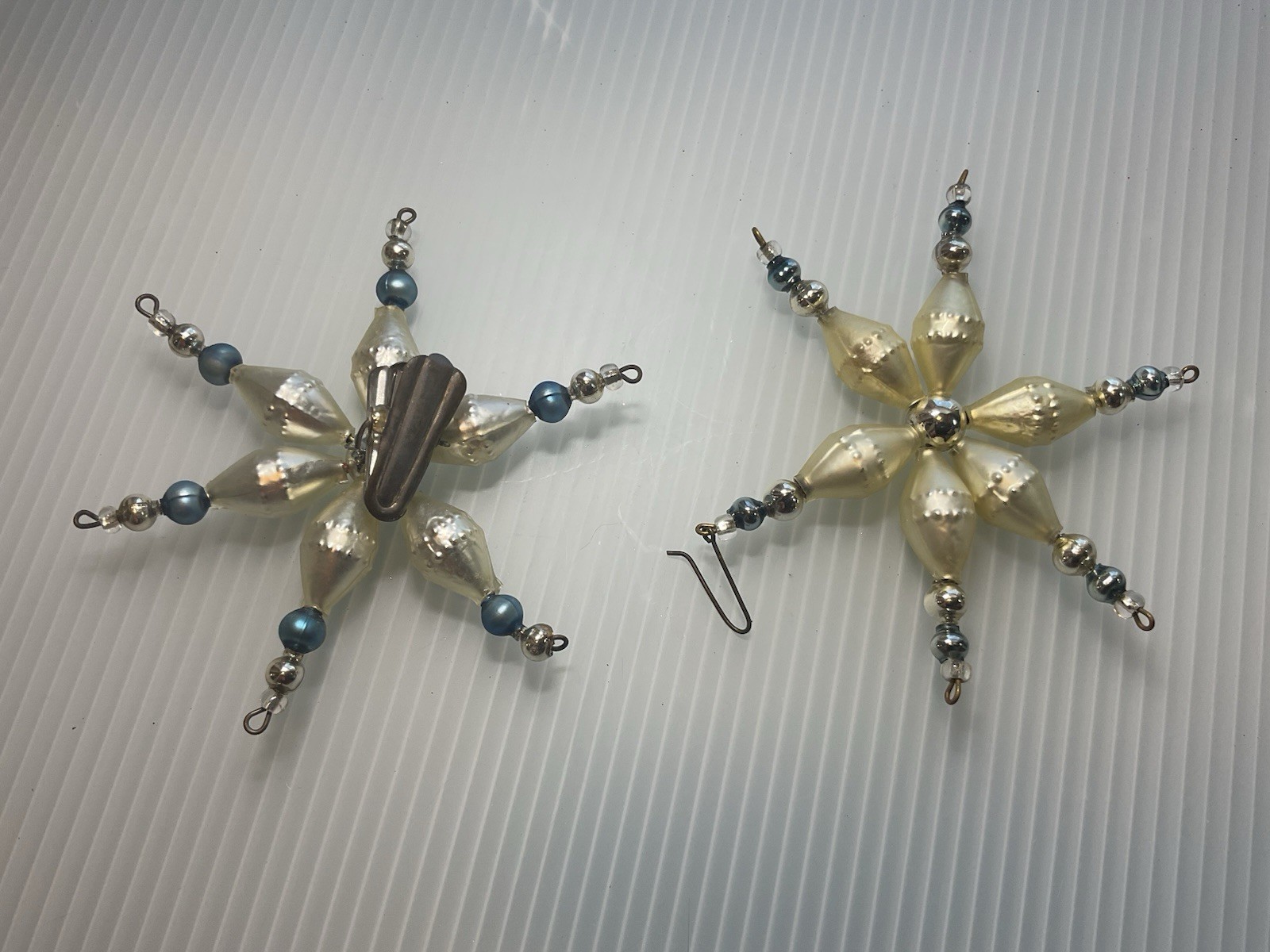 как выглядит Pair Of Vintage Blown Glass Beaded Snowflake Ornaments фото