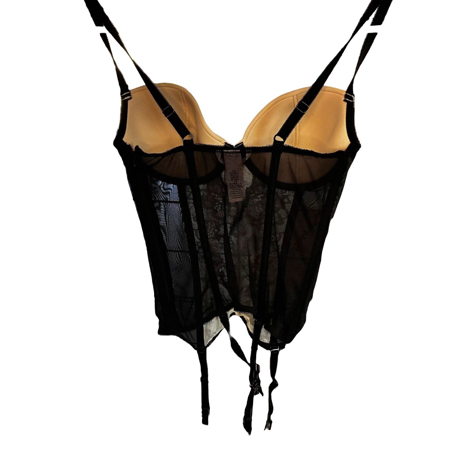 как выглядит Victoria s Secret Lace Mesh Bustier Corset Top Garter Y2K Black/Nude 34B фото