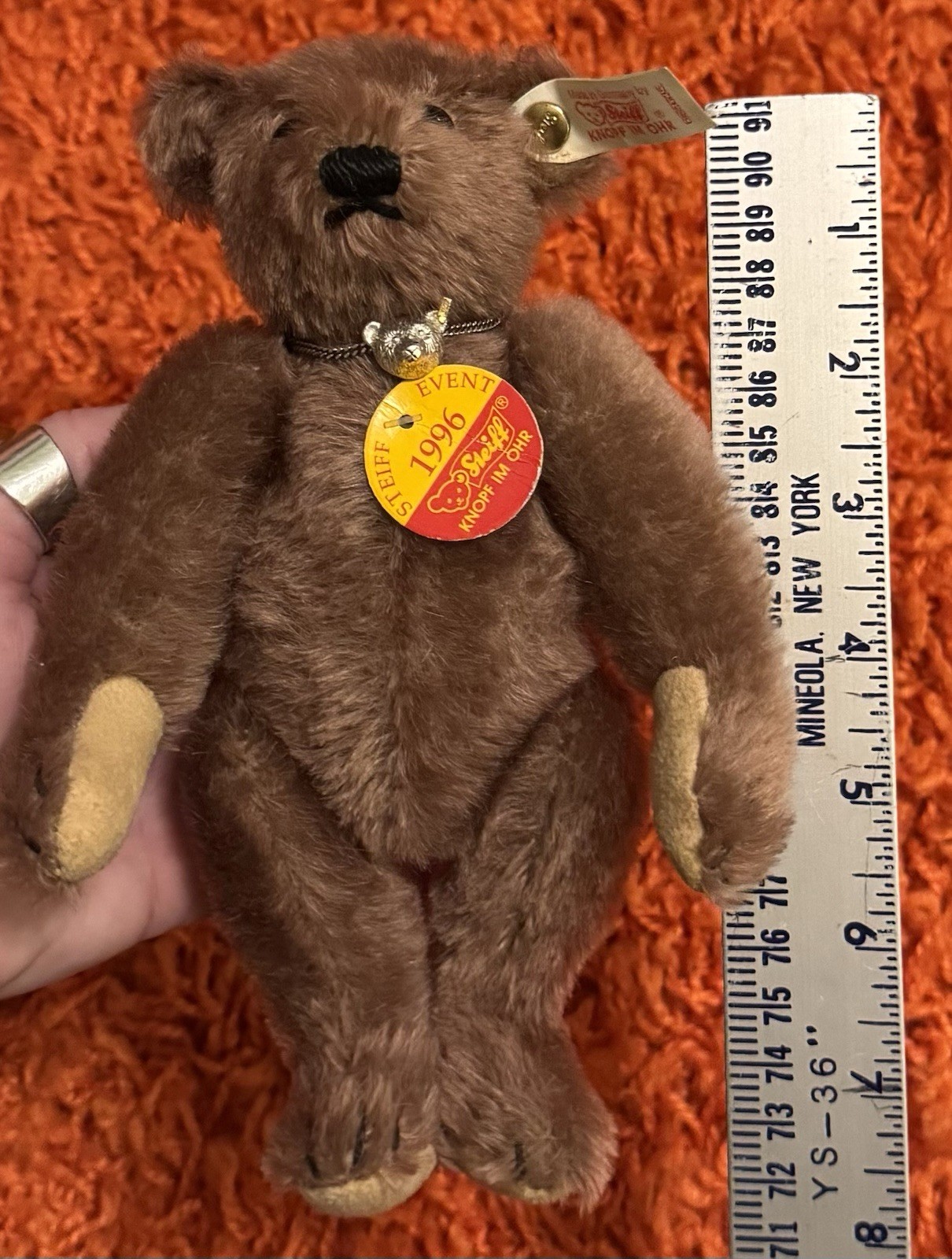 Vintage 1996 Steiff Teddy Bear w/ 925 Sterling Silver Bear Head Bracelet 665035