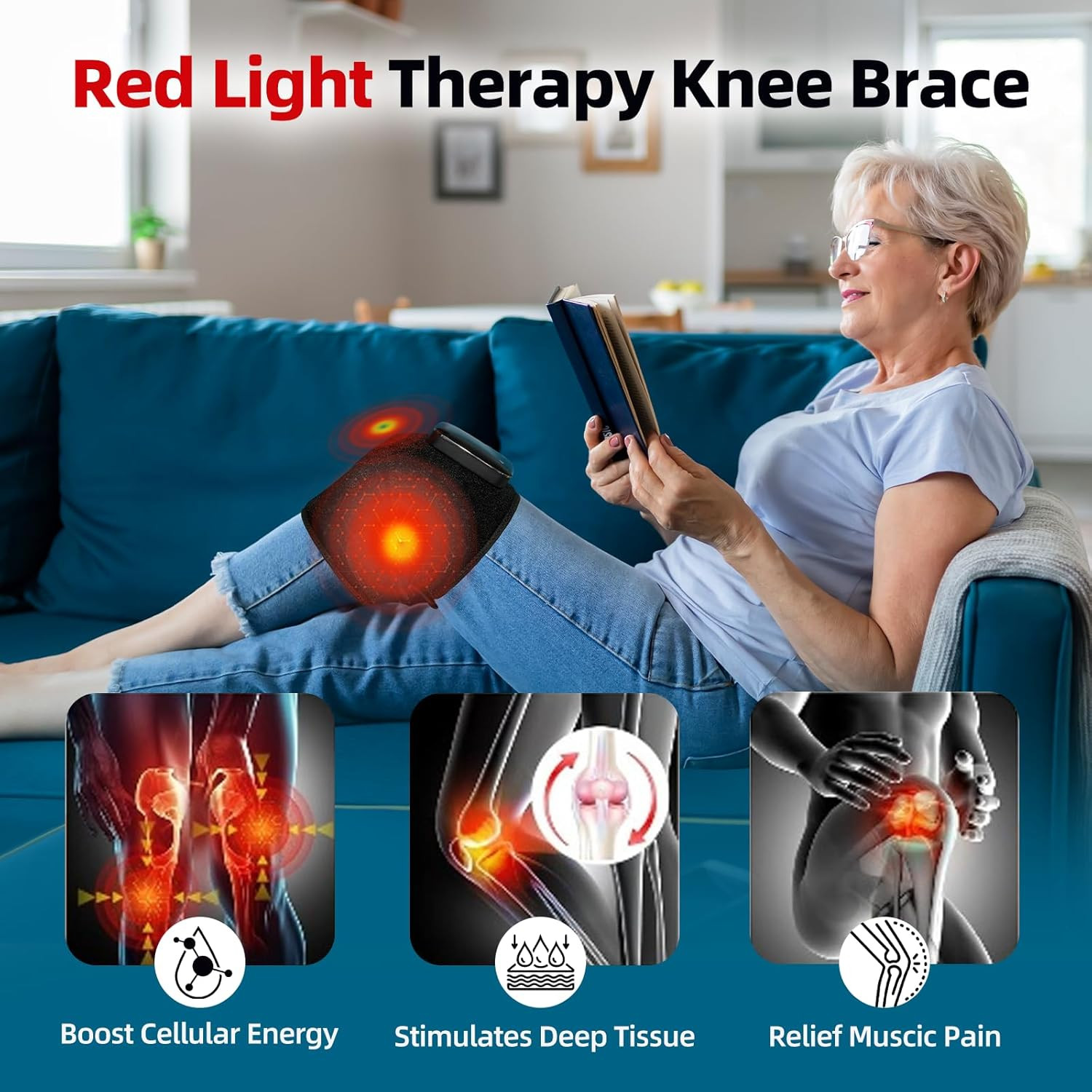 Red Light Therapy for Knee Elbow, Vibration Heated Massage for Knee Brace,66