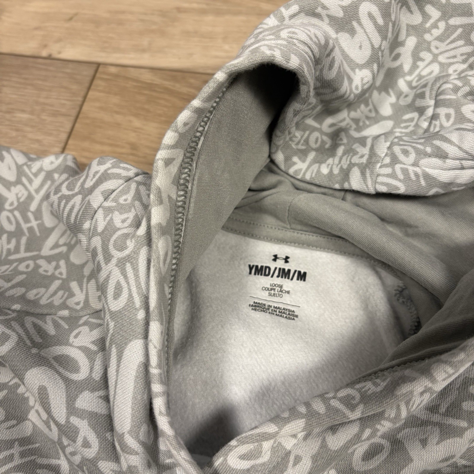 как выглядит Under Armour Sweatshirt Youth Medium Gray Hoodie Pullover Boys All Over Print фото