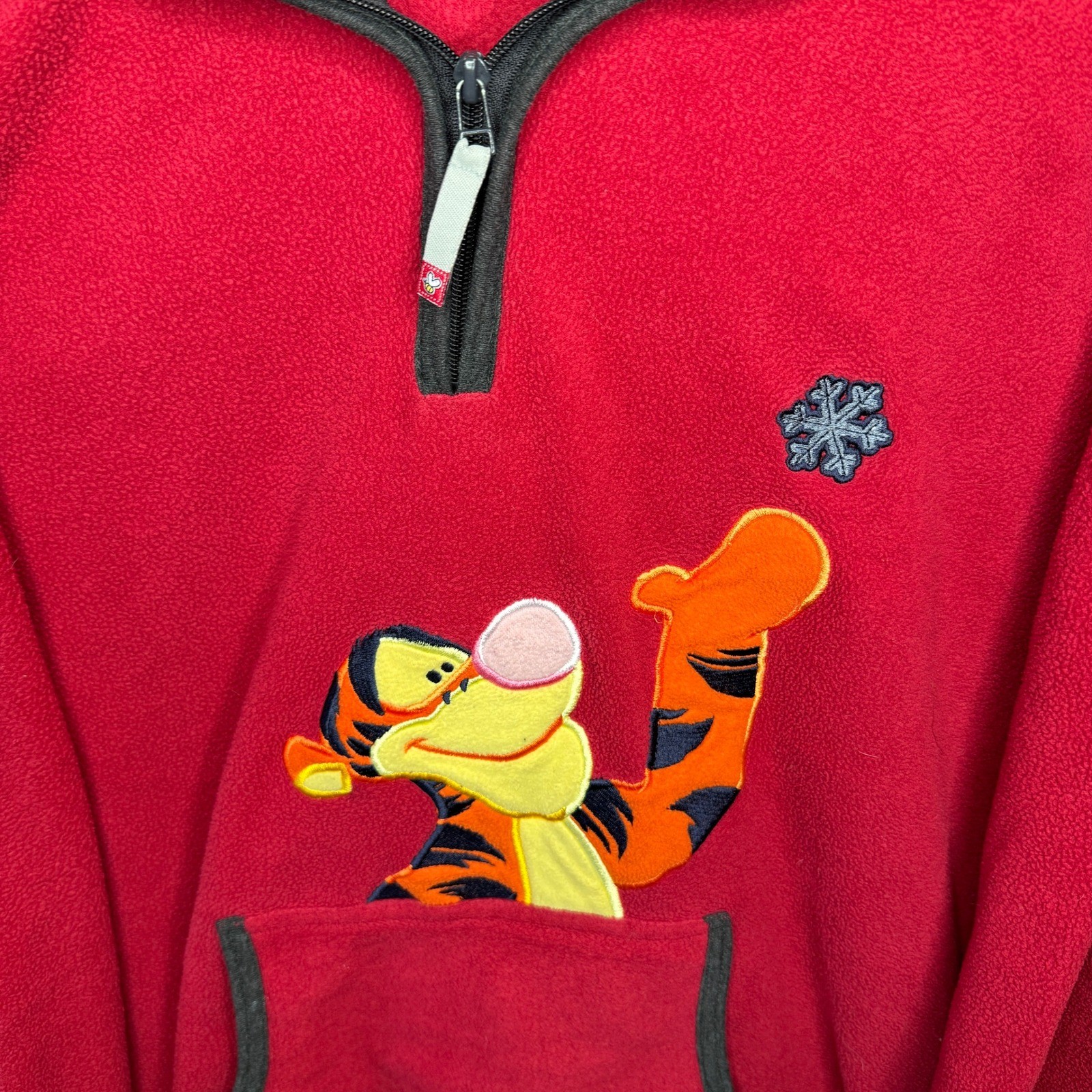 как выглядит Vintage Disney Pooh Tigger Fleece Pullover Red Quarter Zip Jacket Large фото