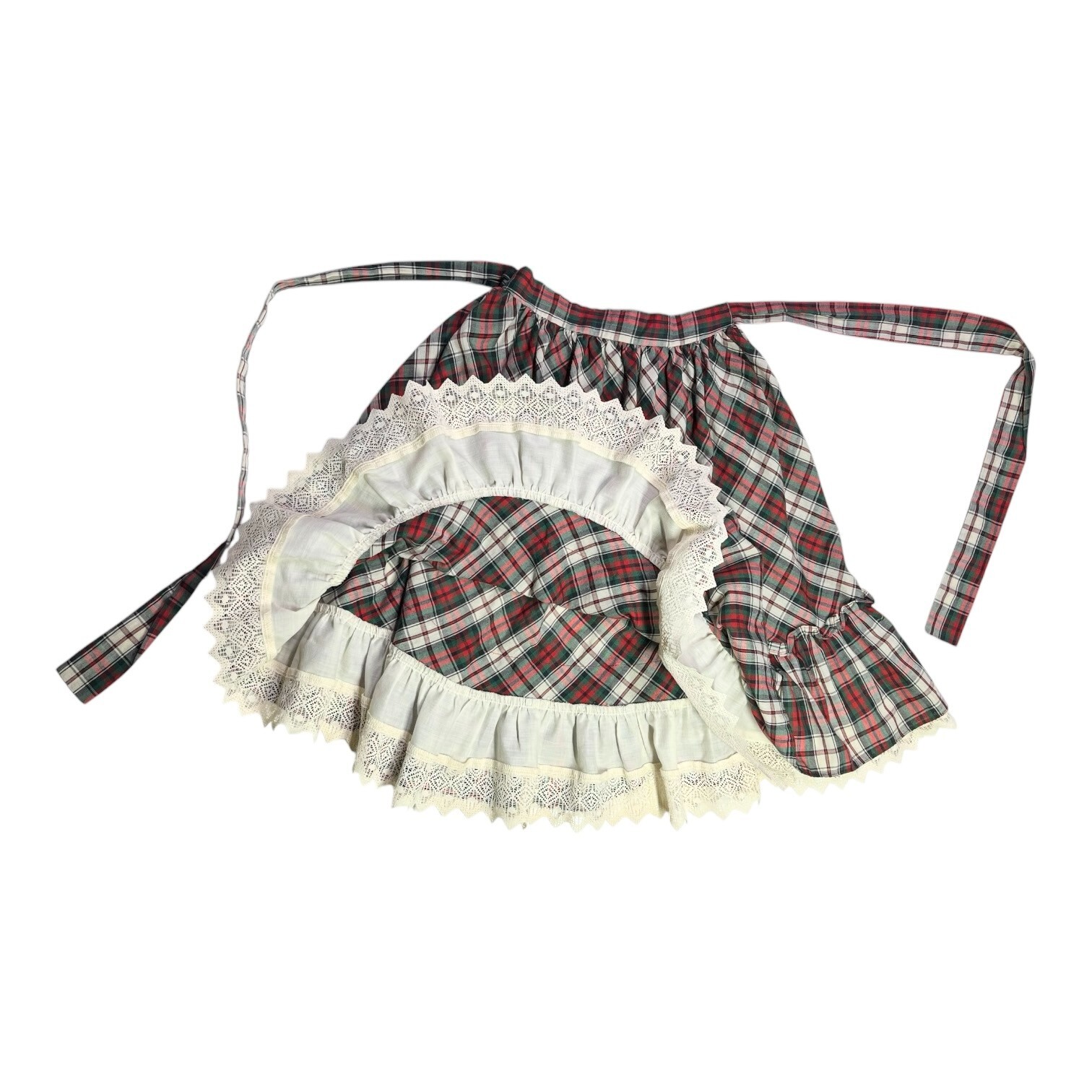 как выглядит Vintage 1980s Bryan Girls Size 8 Ruffled Prairie Skirt Pull-On Plaid фото