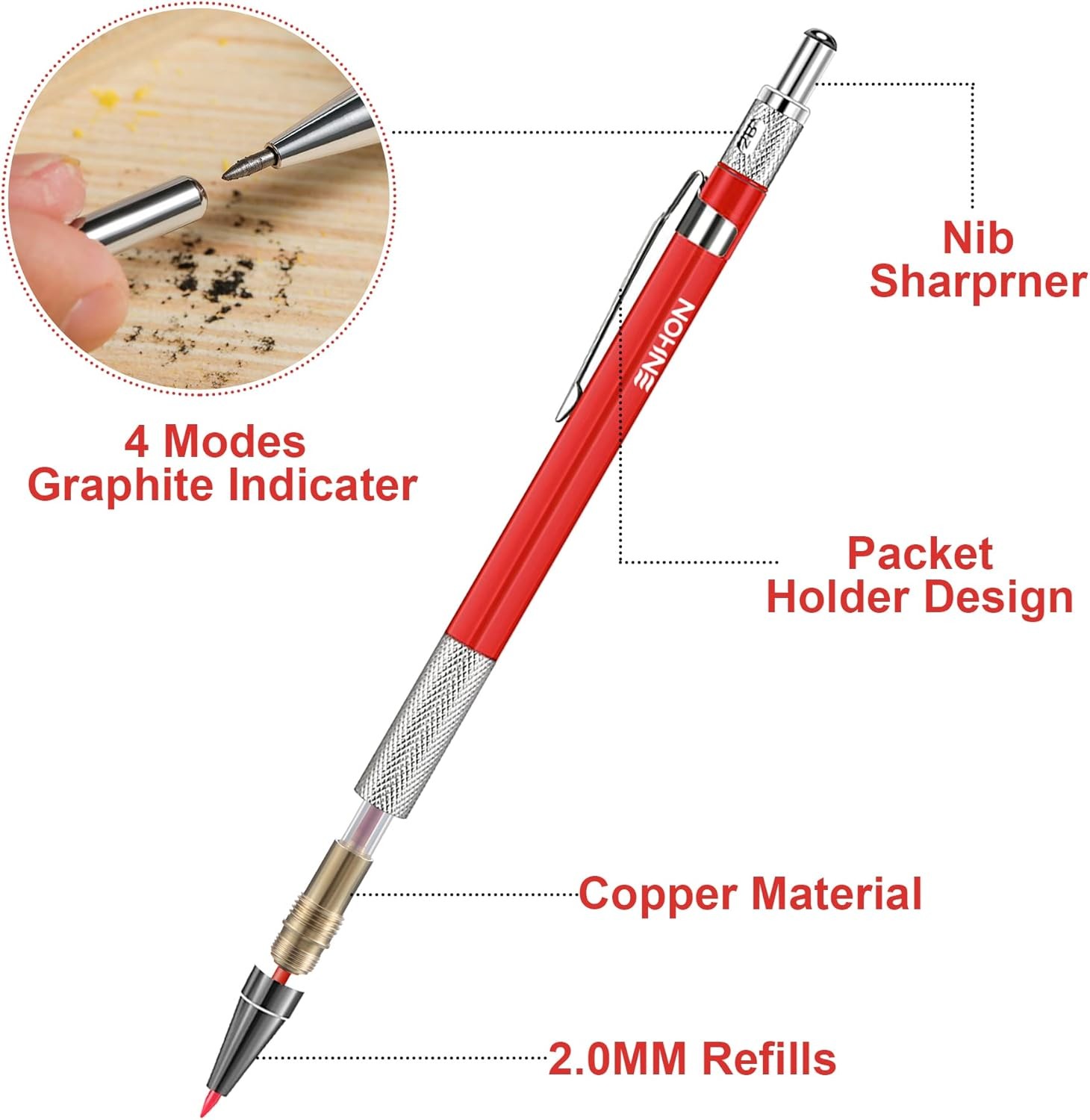 4 Pack Carpenter Pencil Set with Sharpener, Mechanical Woodworking Pencils with