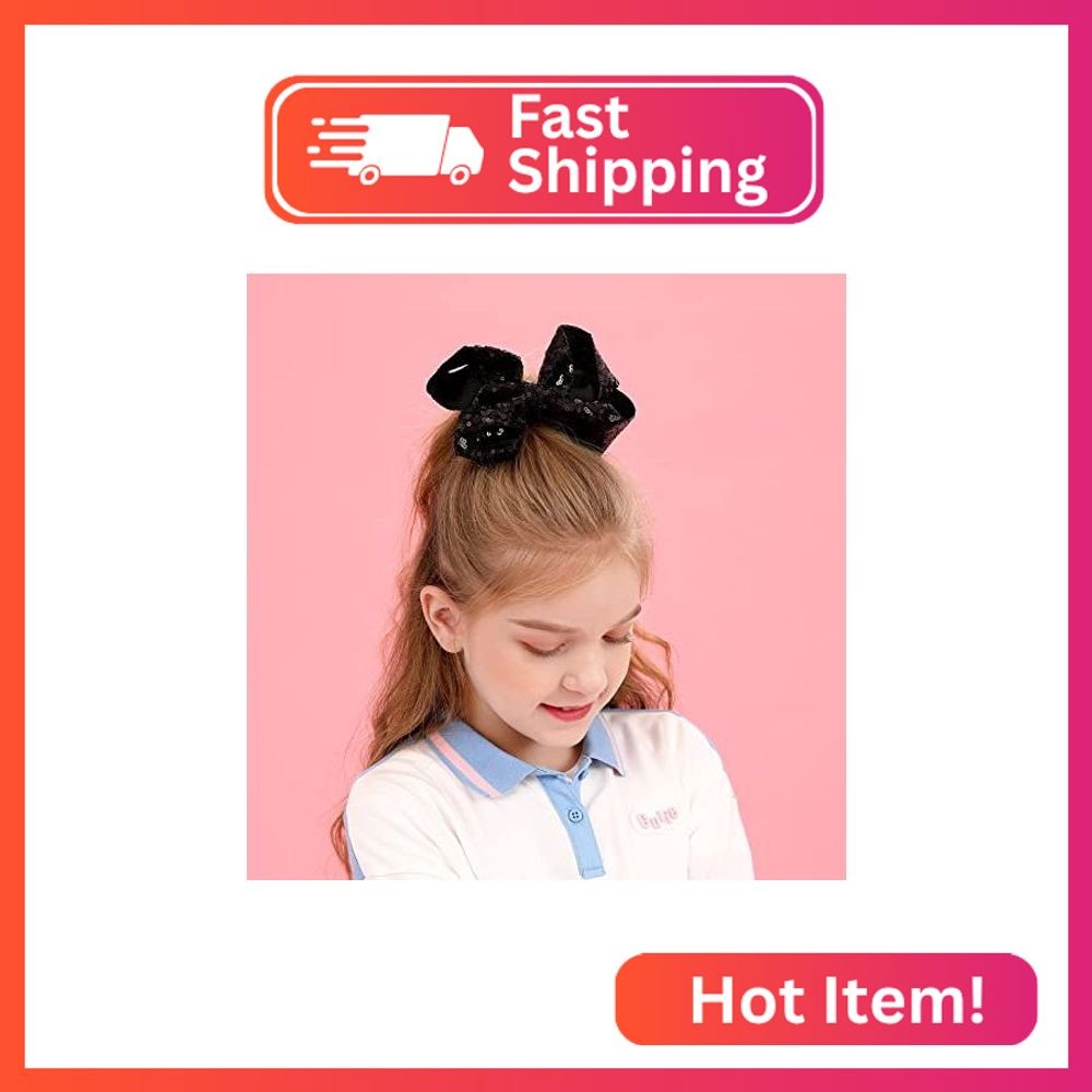 AMYDECOR 6 Inch Black Sparkly Glitter Sequin Hair Bows for Girls Toddlers Kids C