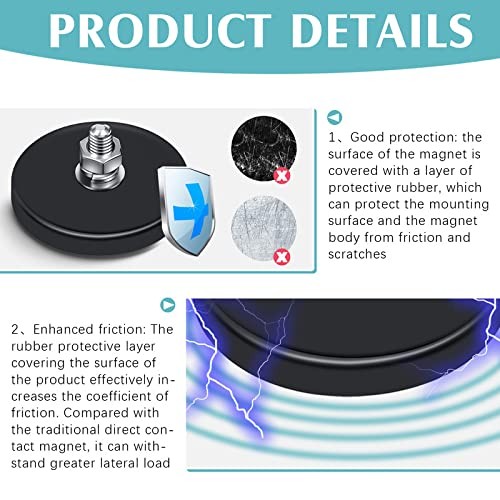 • 8 Pack Neodymium Magnet Rubber Coated Mounting Magnets with Bolt Nuts