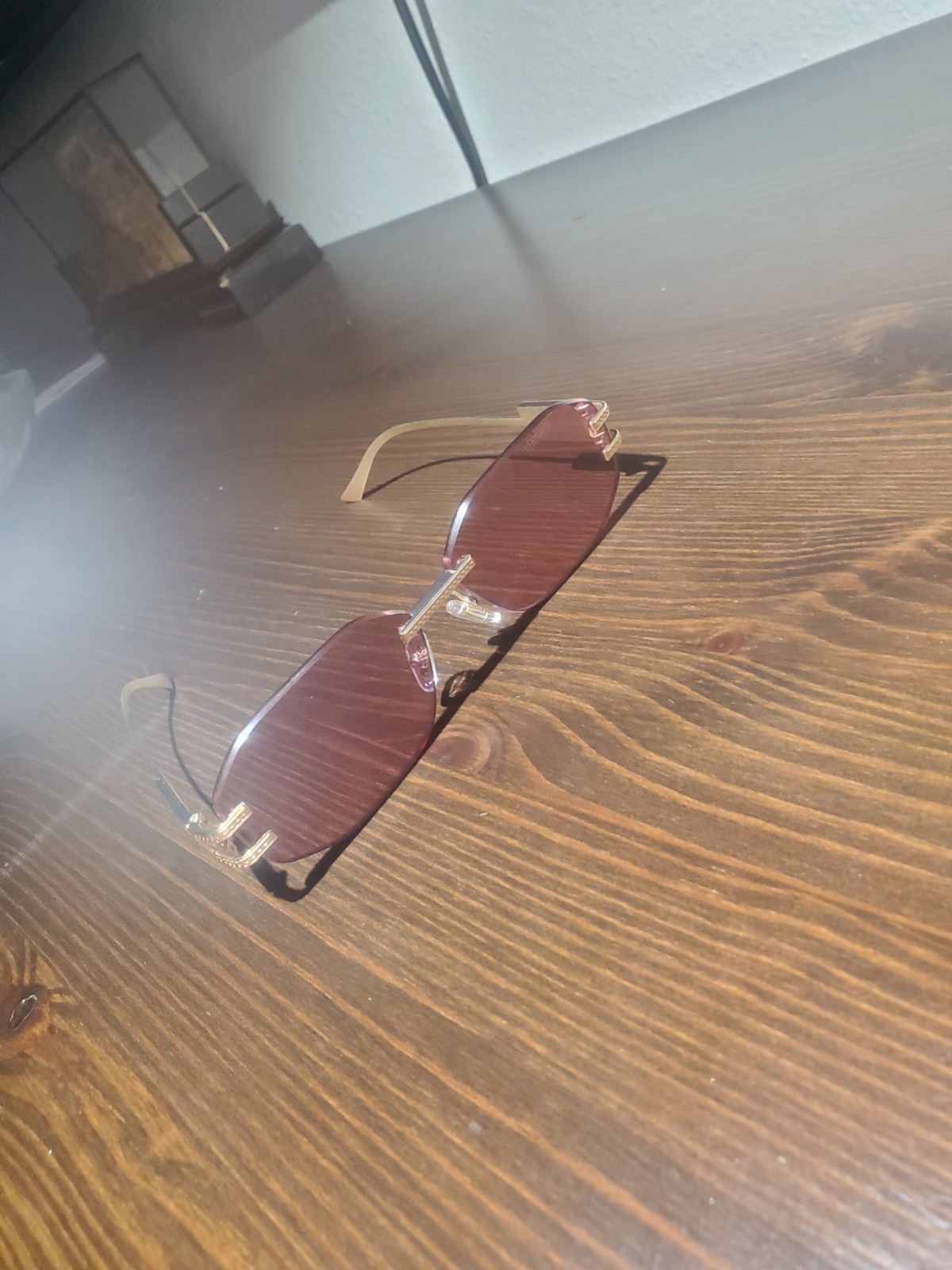 как выглядит Versace VE2274 100284 Rimless Gold Metal Rectangle Sunglasses Pink Tinted Lens фото