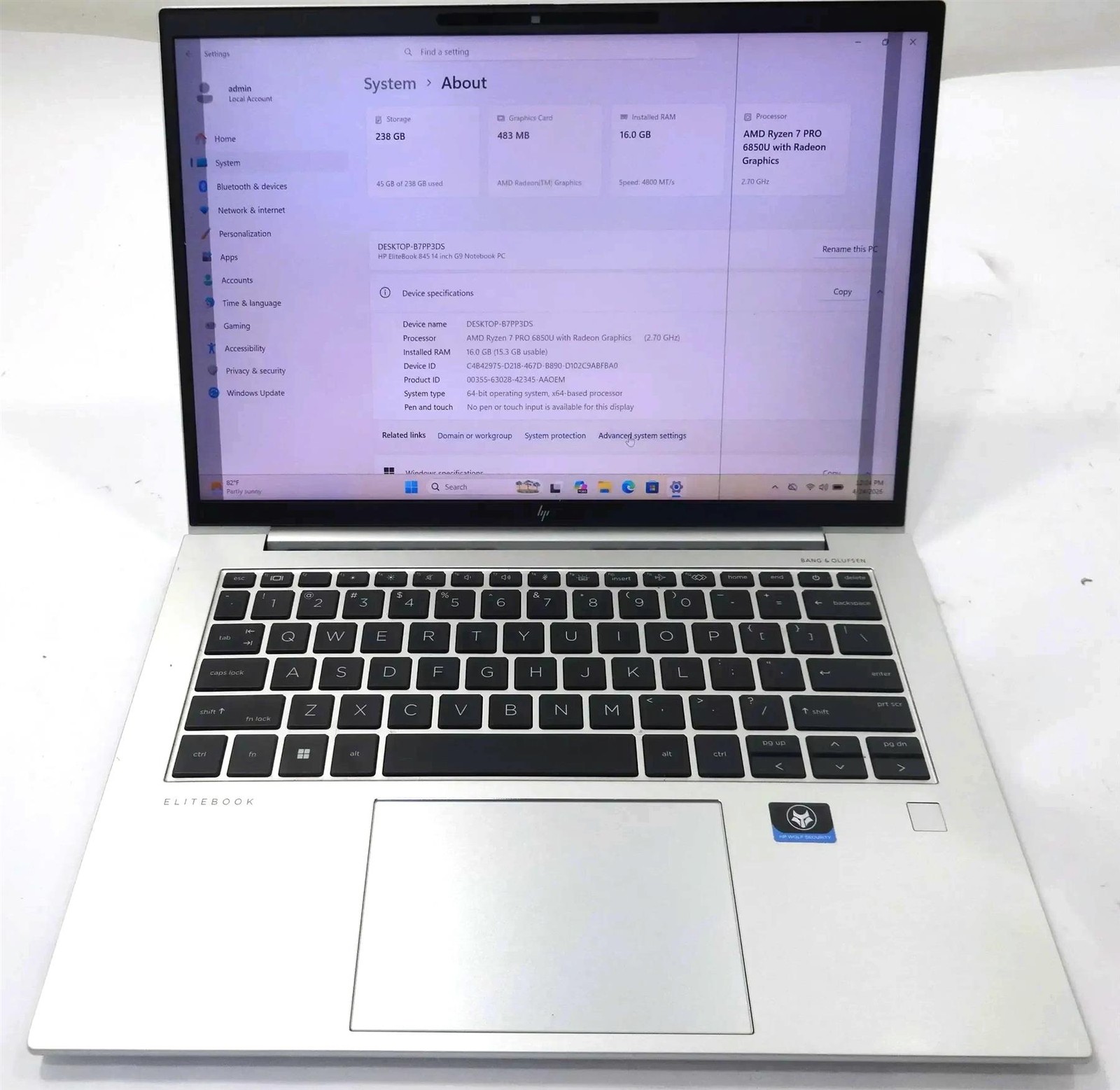 HP Elitebook 845 G9 14 Silver AMD Ryzen 7 PRO 6850U 2.7GHz 16GB 256GB SSD