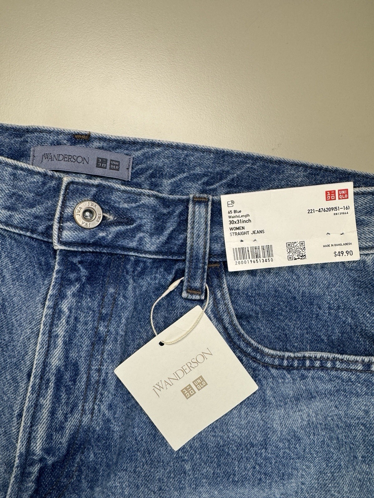 как выглядит JW Anderson x Uniqlo Women s Straight Leg Med Wash Jeans 30x31 NWT 65 Blue фото