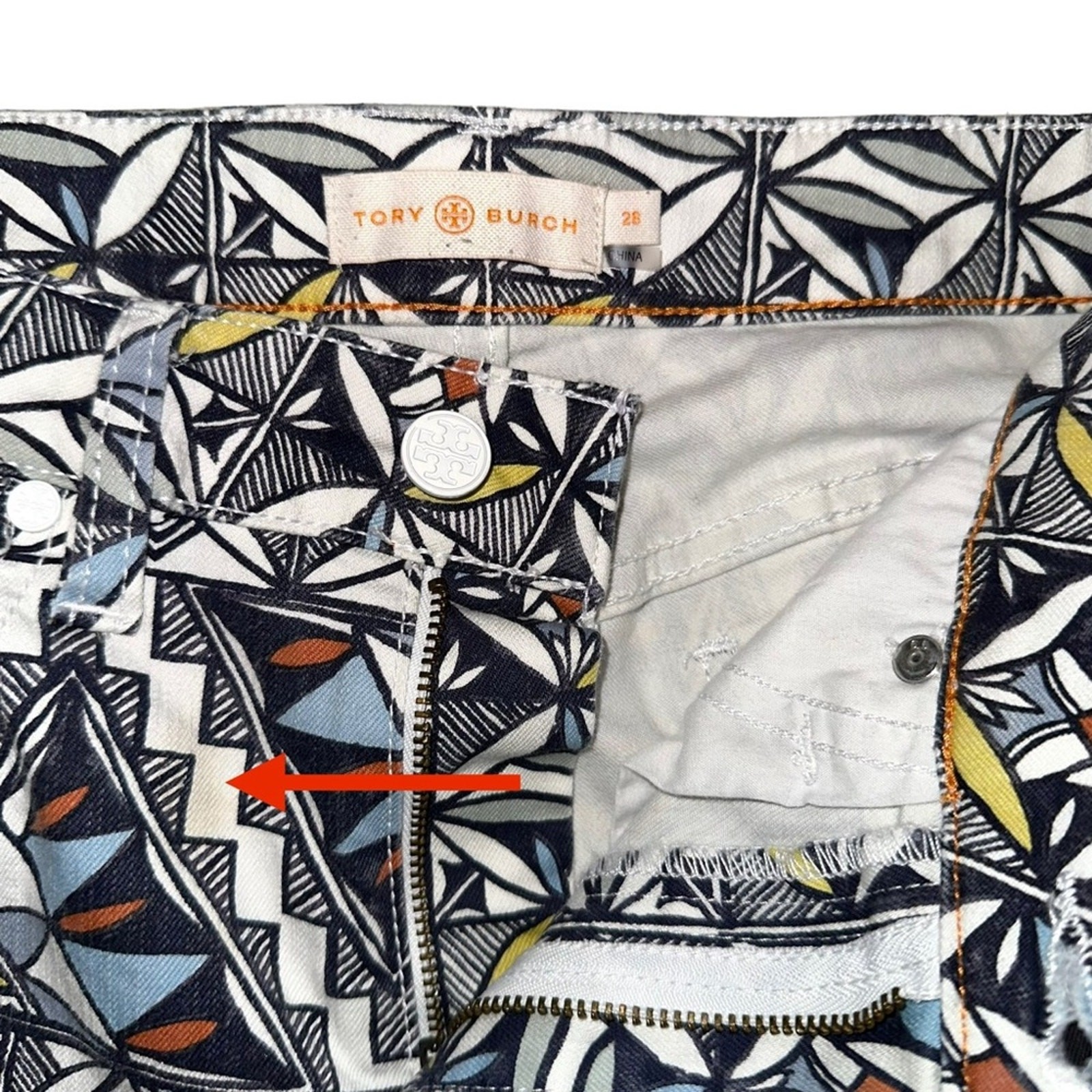 Tory Burch Acoma Printed Cropped Pants 28 in Riviera Blue