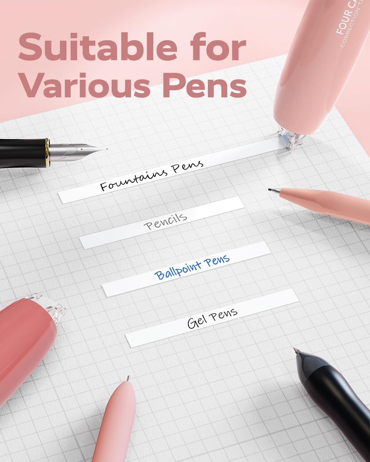 Refillable Retractable White Correction Tape, 4PCS Smooth White Pull-Out Tape wi