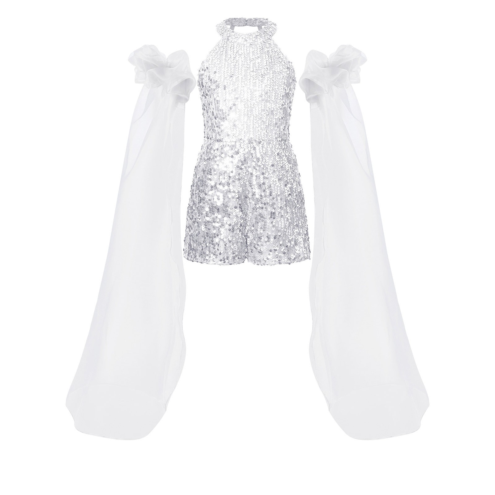 как выглядит Kids Girls Toddler Playsuit Dance Costume Jumpsuit Glitter Romper Halter Neck фото