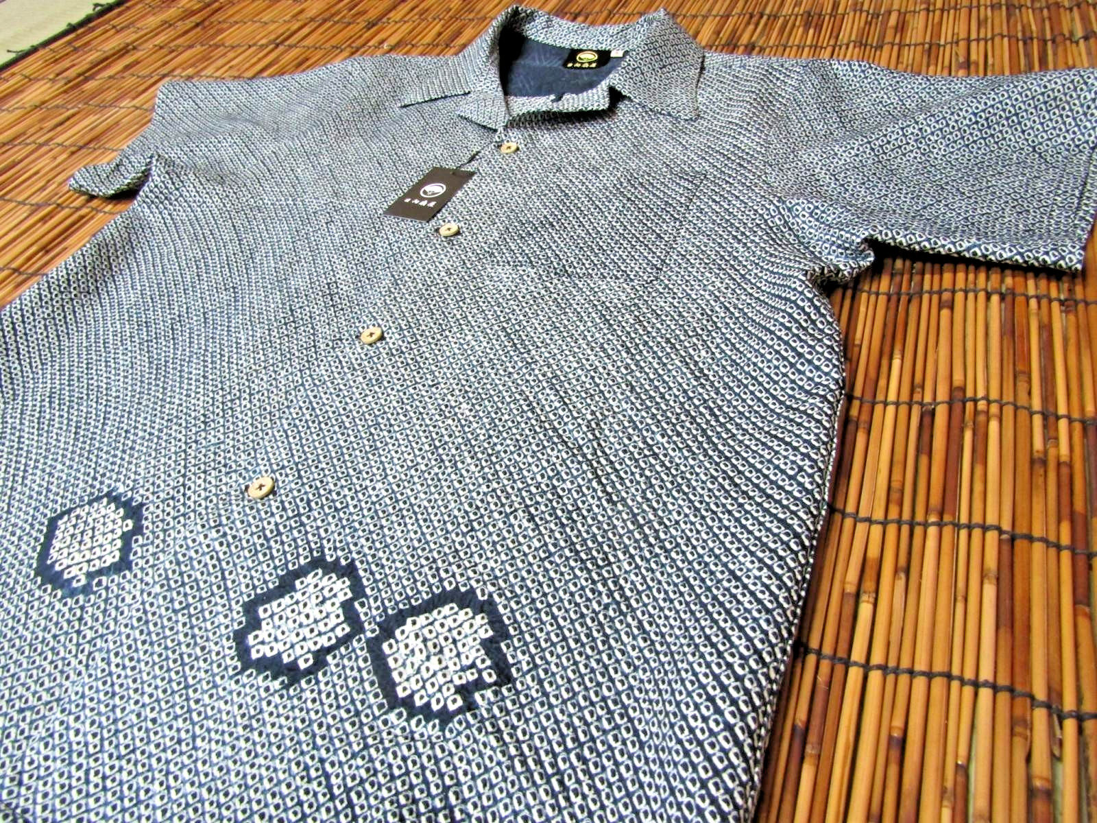 как выглядит Japanese Antique Silk Kimono Aloha Shirt Mens S Grey Indigo Shibori фото