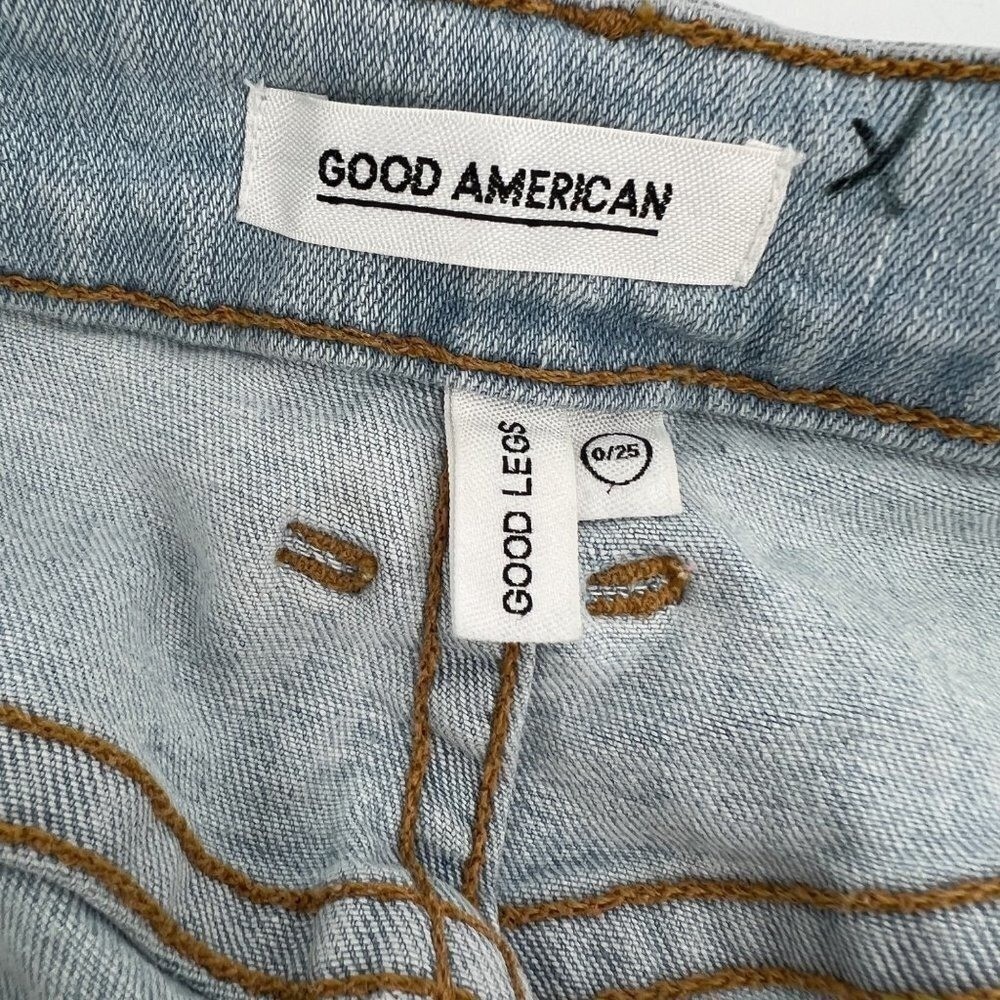 как выглядит Good American Good Legs High Waist Shark Bite Hem Skinny Jeans Retro High Rise фото