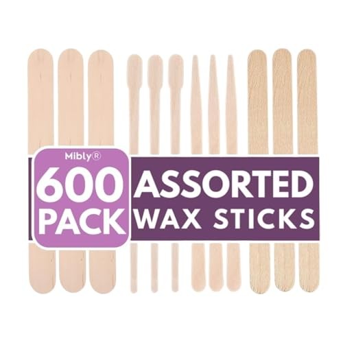 Mibly 600 Pack Wooden Wax Sticks Craft Applicators Assorted Sizes