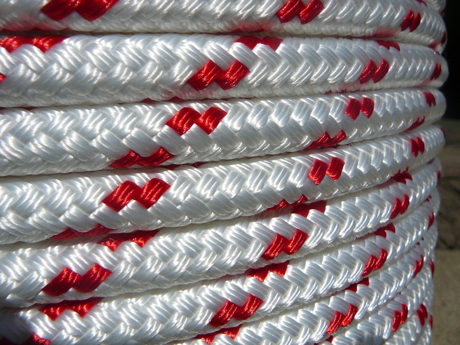 Sailboat Rigging Rope 7/16 x 50' White/Red Double Braided Sheet Halyard Line