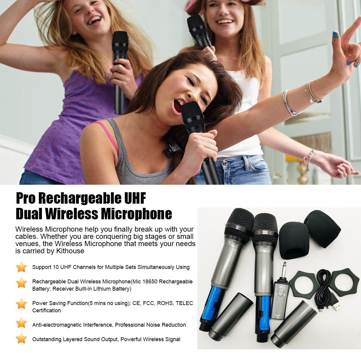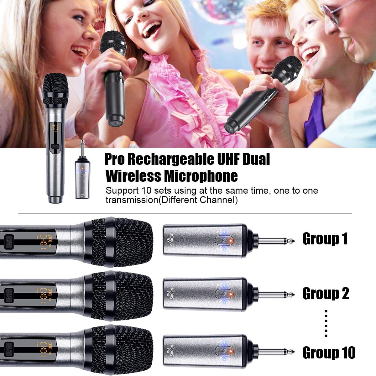 Dual UHF Supercardioid Handheld Wireless Vocal Microphone System Mic 10 Channel