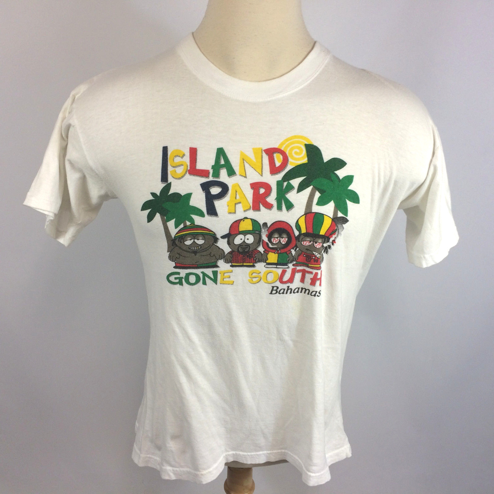 как выглядит Vintage 1990s Jamaican Bahamas Travel T Shirt Cartoon Grunge Palm Surf Beach M фото